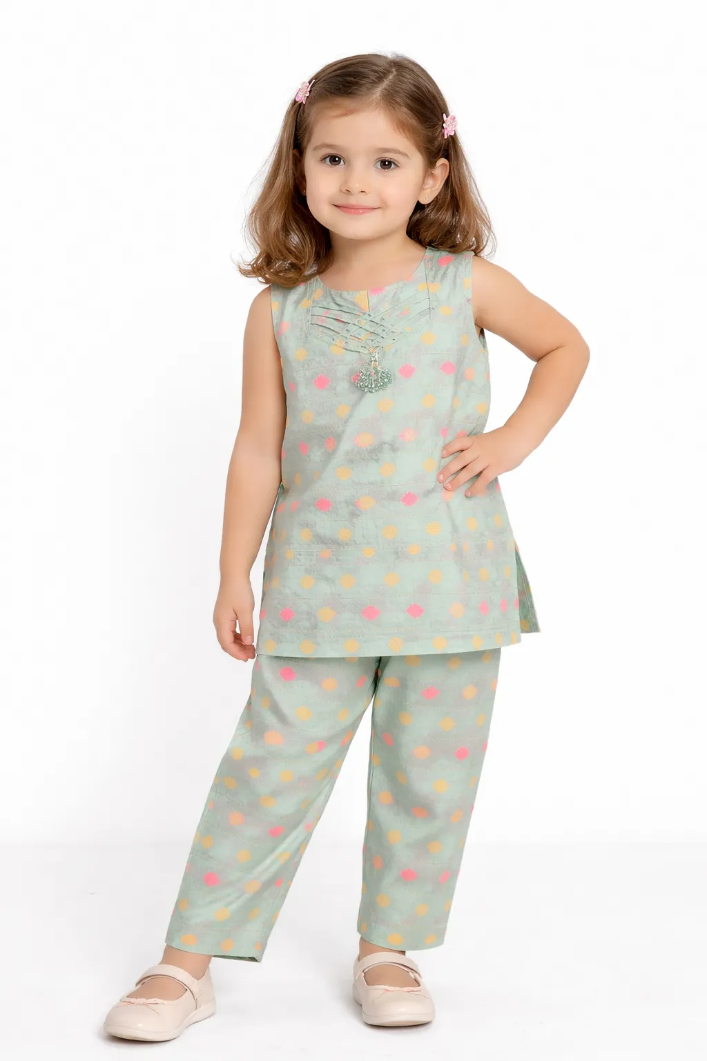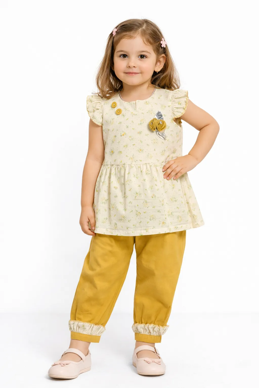 Cute Girls Printed Kurti & Trouser Set – Soft Cotton Kids Outfit