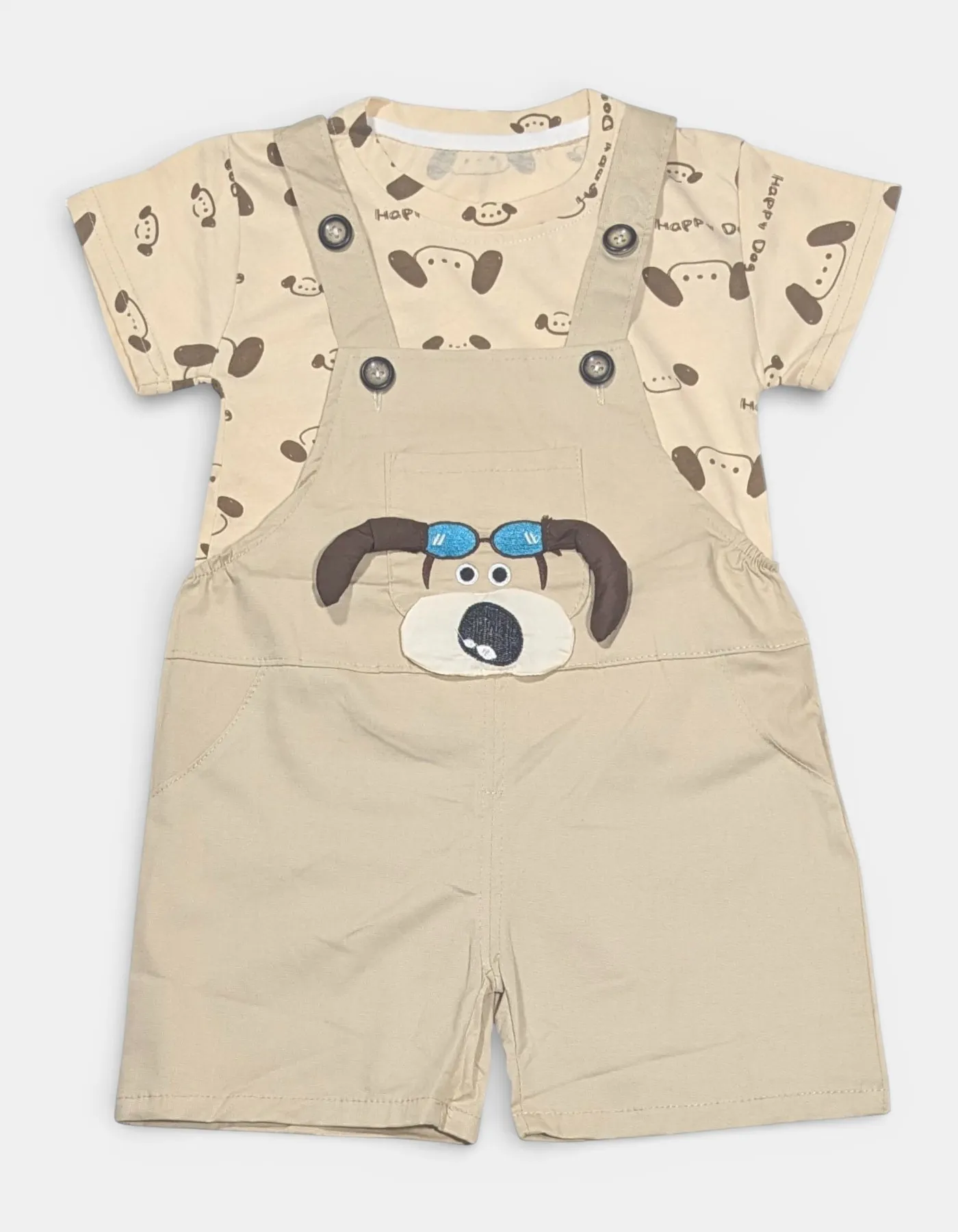 Boys Beige Puppy Applique Romper...