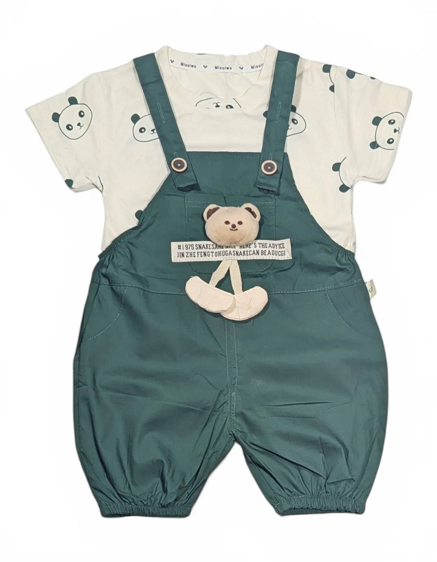 Boys Green Teddy Bear Dungaree R...