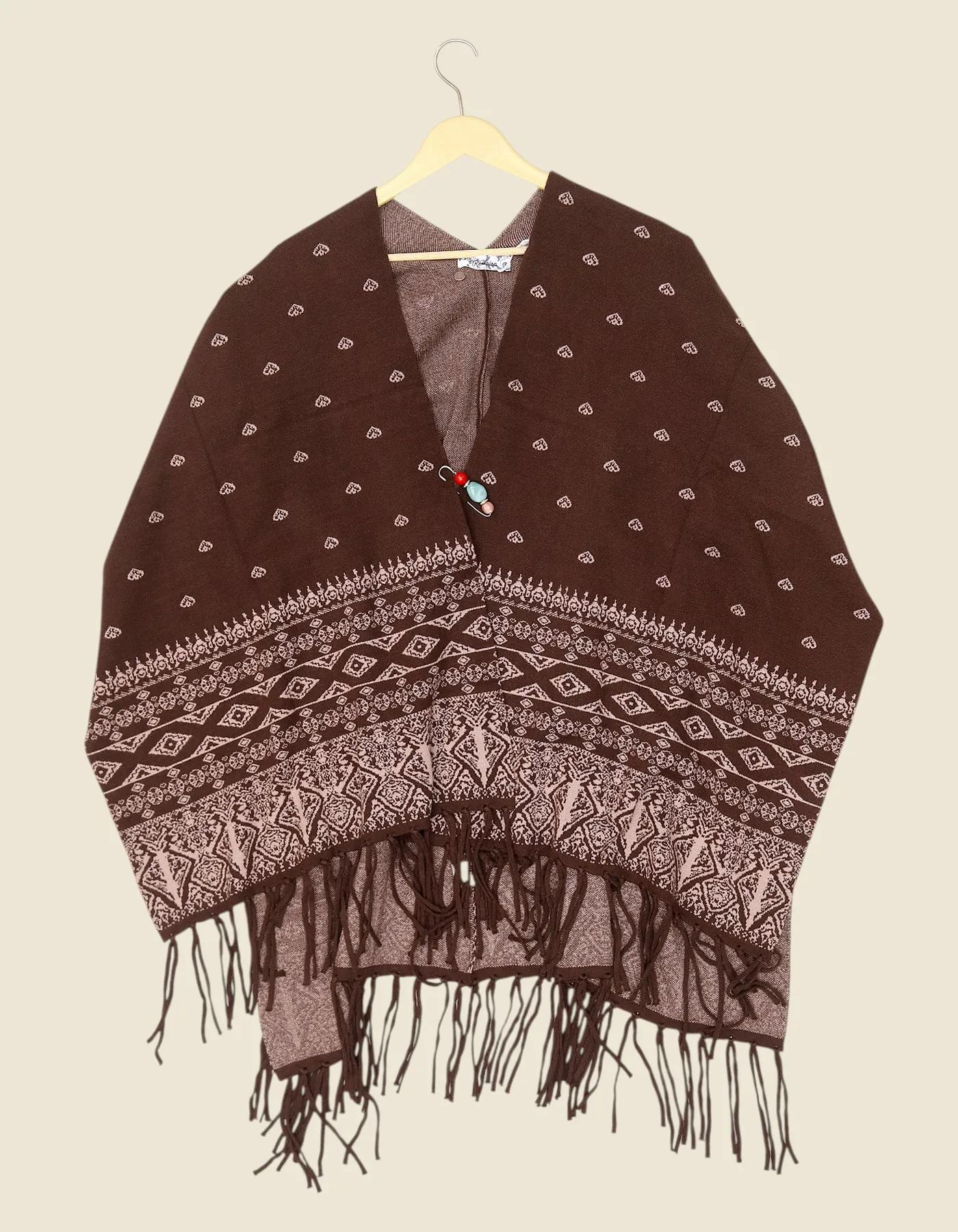 Womens Brown Woolen Poncho with ...
