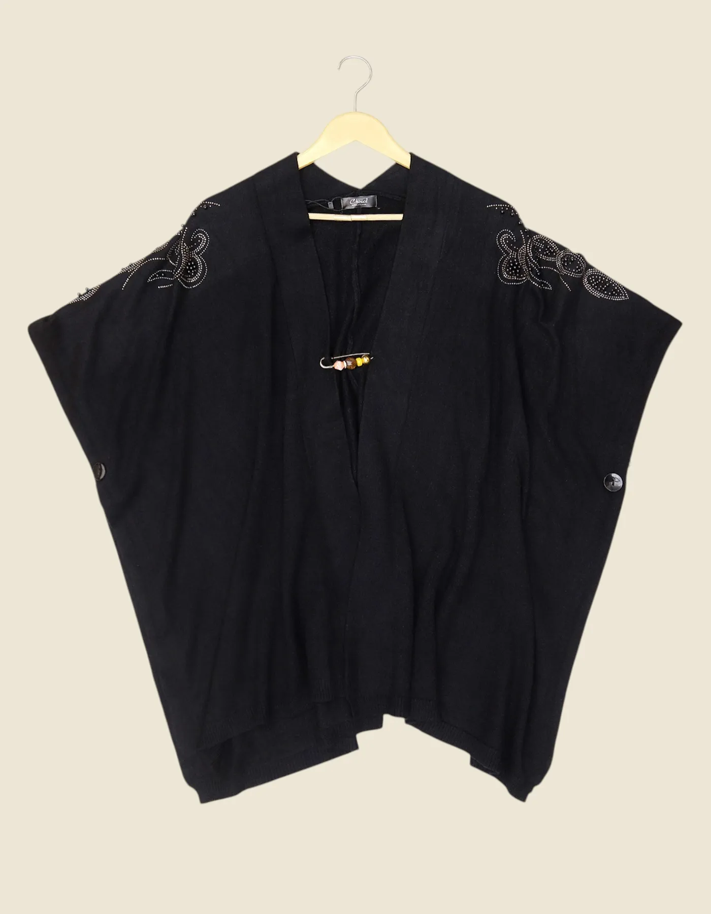 Womens Elegant Black Woolen Ponc...