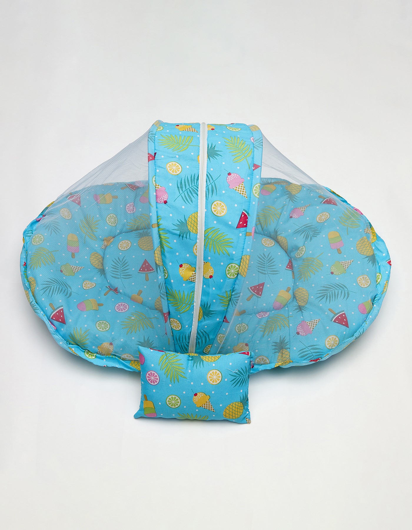 Ensure your little one sleeps soundly and stays protected with this adorable baby bedding set, designed in a refreshing sky blue color with cute fruit and ice-cream prints. Perfect for everyday use, this set combines comfort, safety, and style.