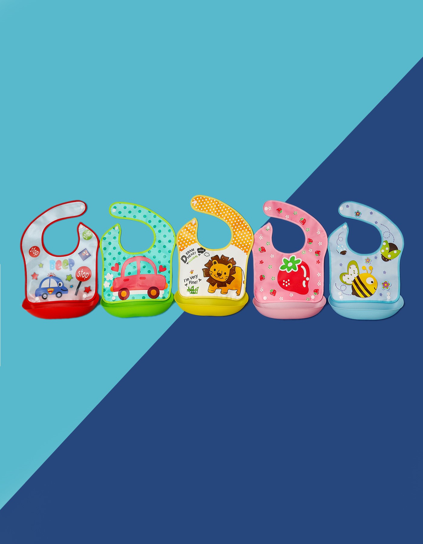 This practical and convenient baby bib features a flexible plastic or rubber design with a soft tray at the bottom to catch spills and dropped food. The bib is waterproof, durable, and easy to clean. It includes adjustable straps for a comfortable fit and a folding feature for easy storage and portability, making it ideal for on-the-go parents. The soft tray edges ensure comfort, while the wipeable material makes cleanup a breeze.