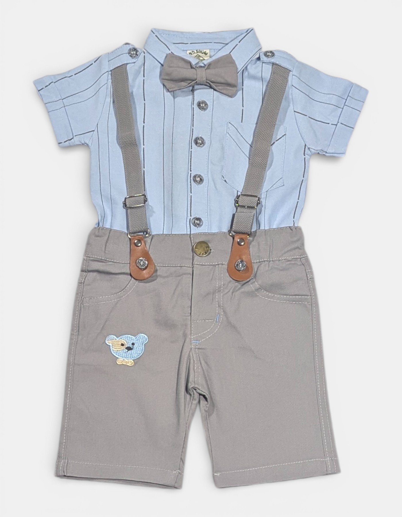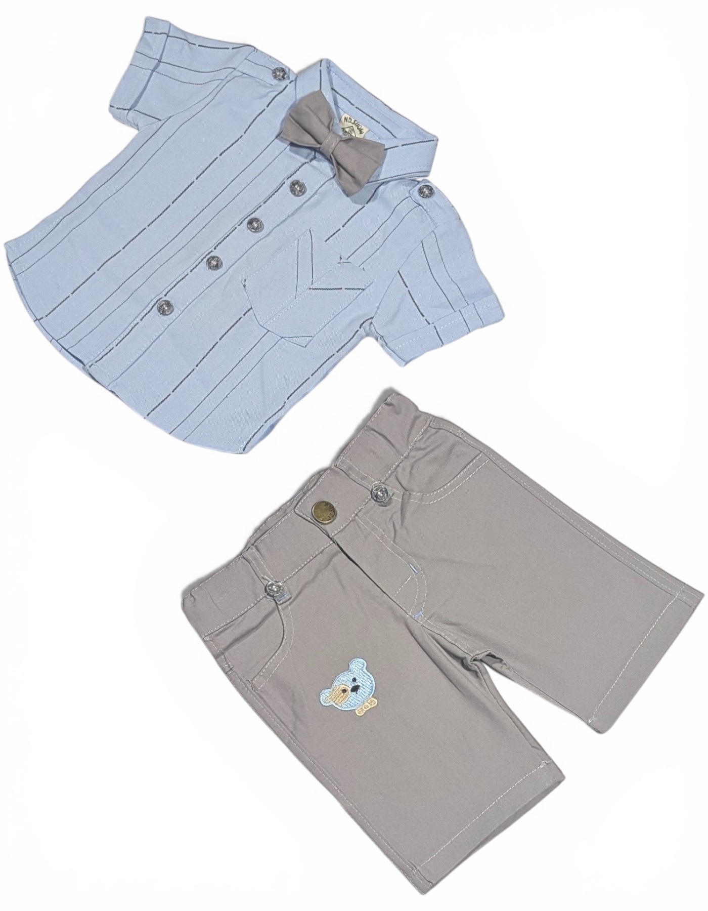 Playful Details: Features a cute "Teddy Bear" embroidery on the shorts to keep the look fun and age-appropriate.