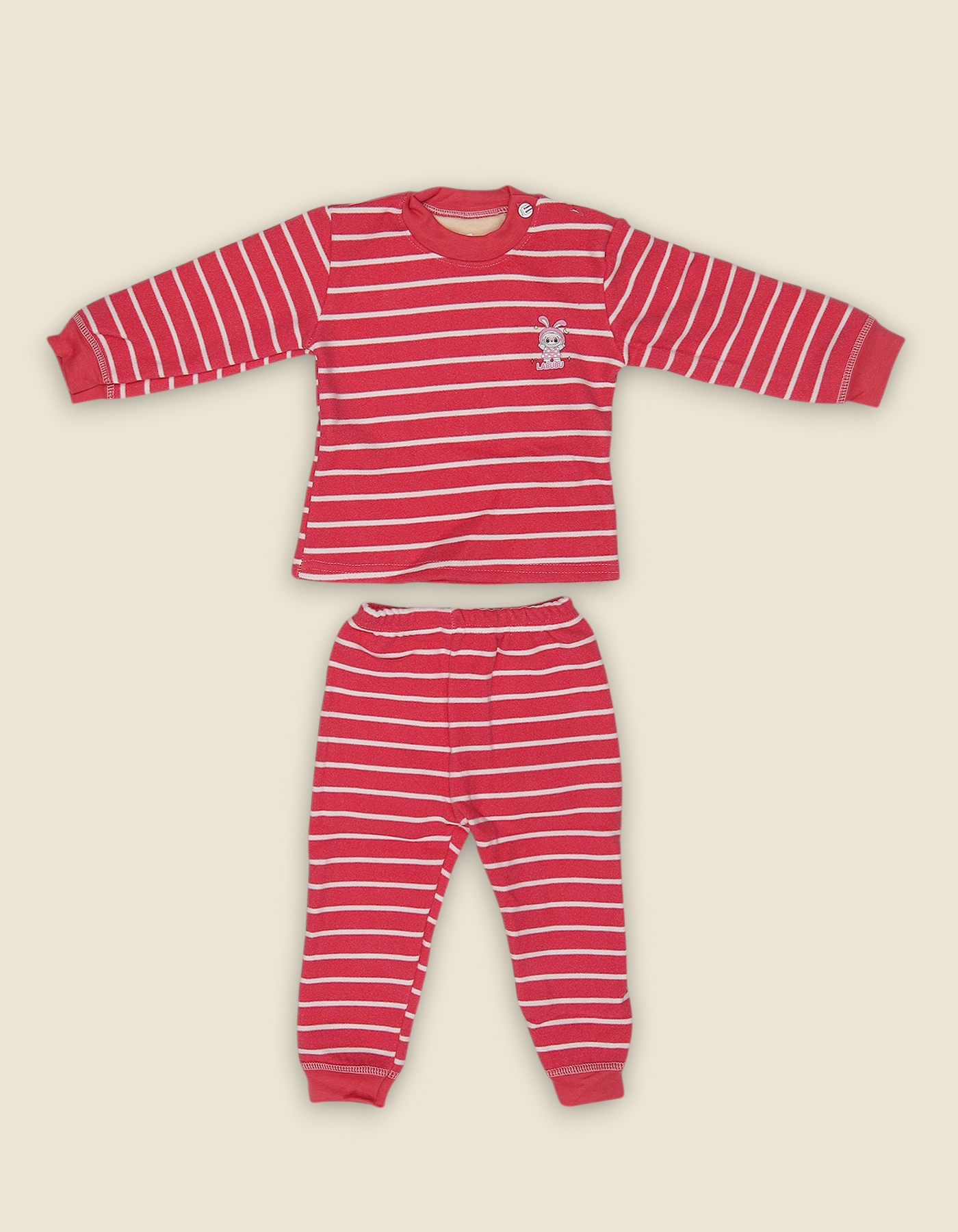 Soft and cozy fleece suit with striped design and bear detail. Perfect for baby boys, daily wear and gifting.