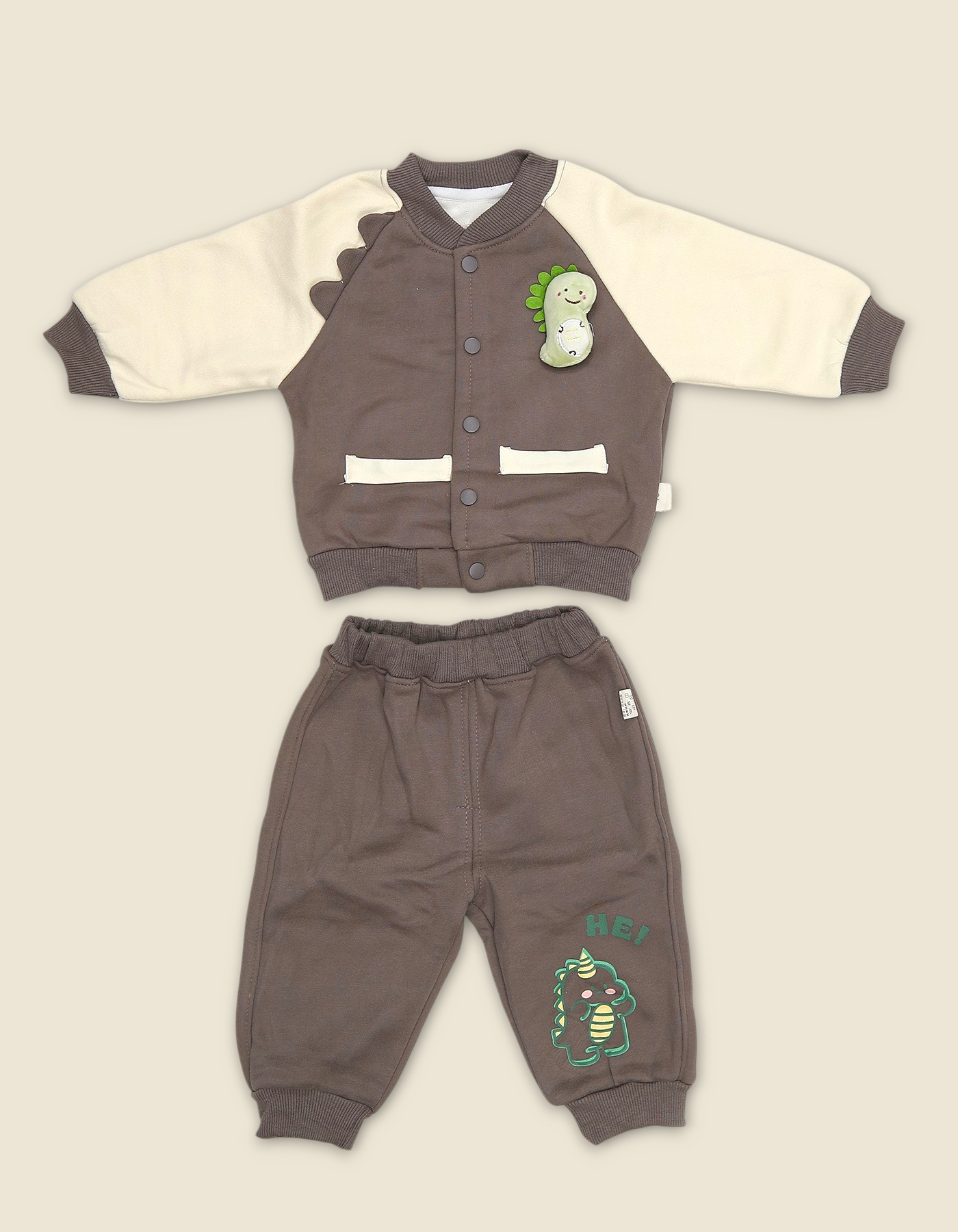 Warm boys fleece suit with dinosaur graphic jacket and matching pants. Perfect for winter wear playtime and gifting