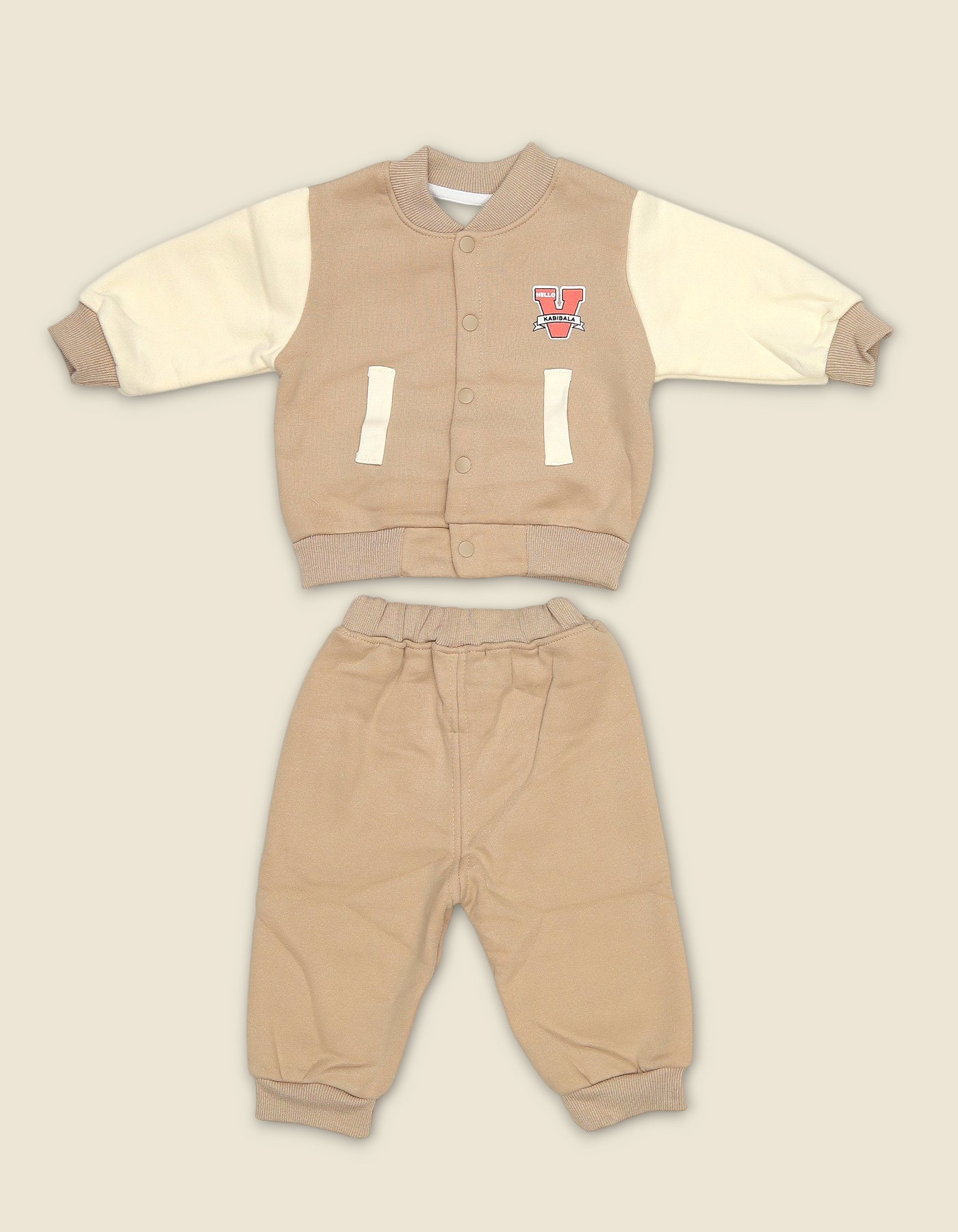 Warm boys fleece suit with varsity style jacket and matching pants. Perfect for winter wear playtime and gifting