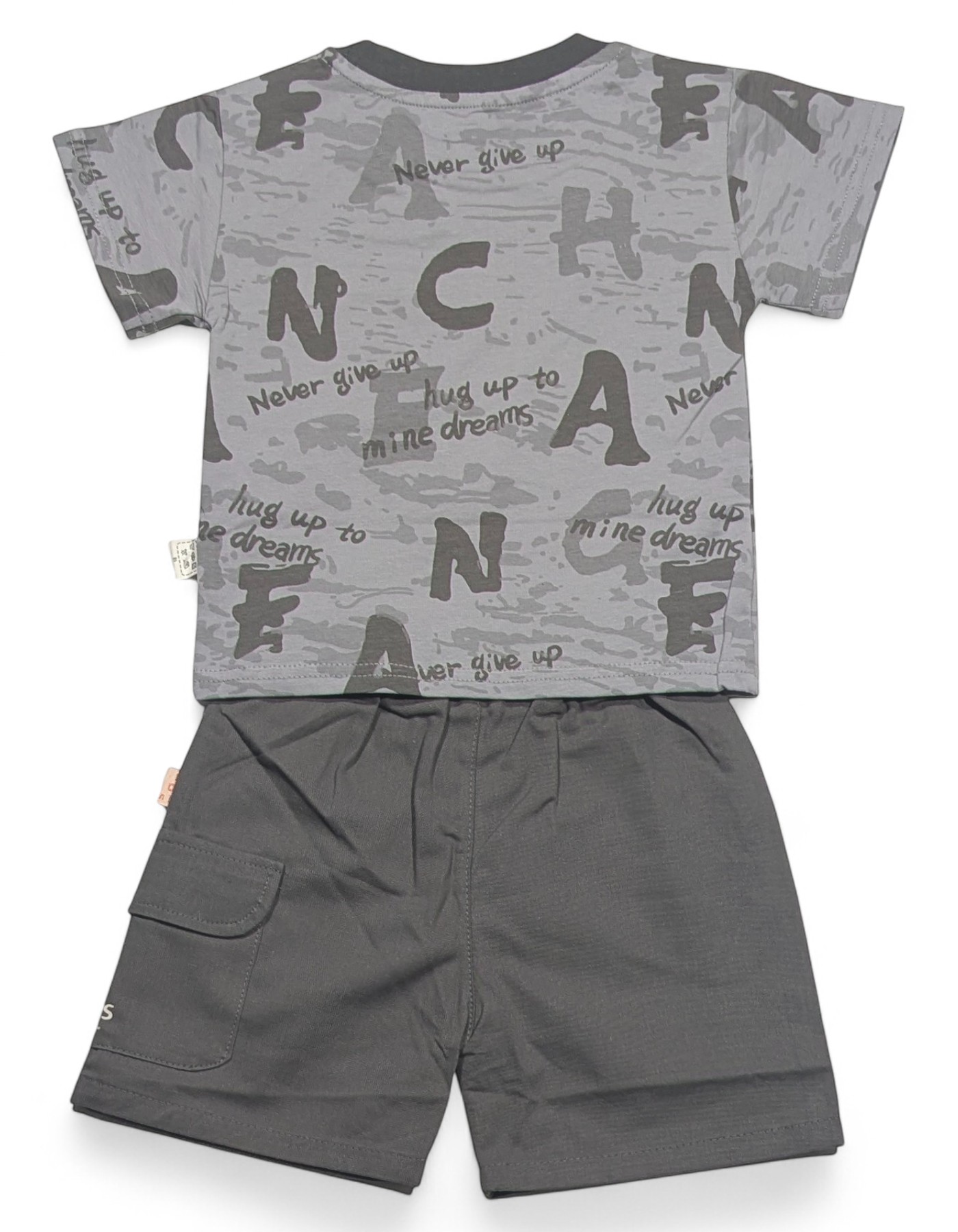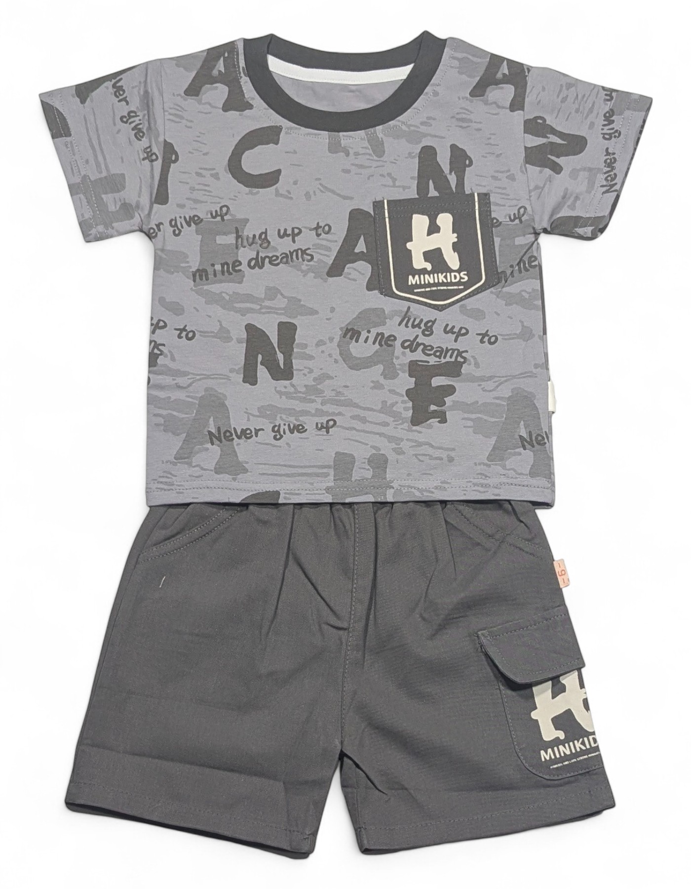 Boys Printed T-Shirt & Shorts Casual Wear Set Dress your little one in comfort and style with this trendy boys’ casual wear set. The outfit features a soft printed half-sleeve T-shirt paired with matching solid shorts, creating a smart and playful look for everyday wear. Designed with breathable fabric and a relaxed fit, this set ensures all-day comfort whether your child is at play, outings, or casual gatherings. The modern print adds a stylish touch, while the elastic waistband shorts provide ease of movement and a secure fit. Perfect for summer days, this versatile set combines fashion with functionality, making it a must-have addition to your child’s wardrobe.