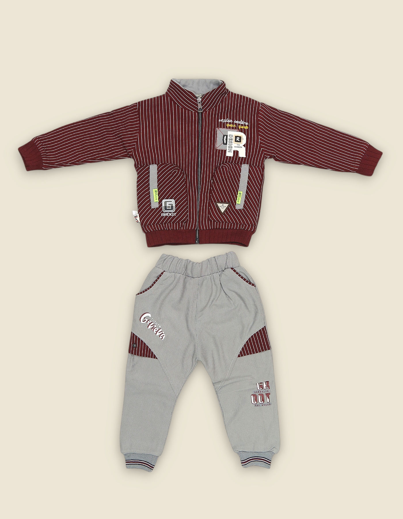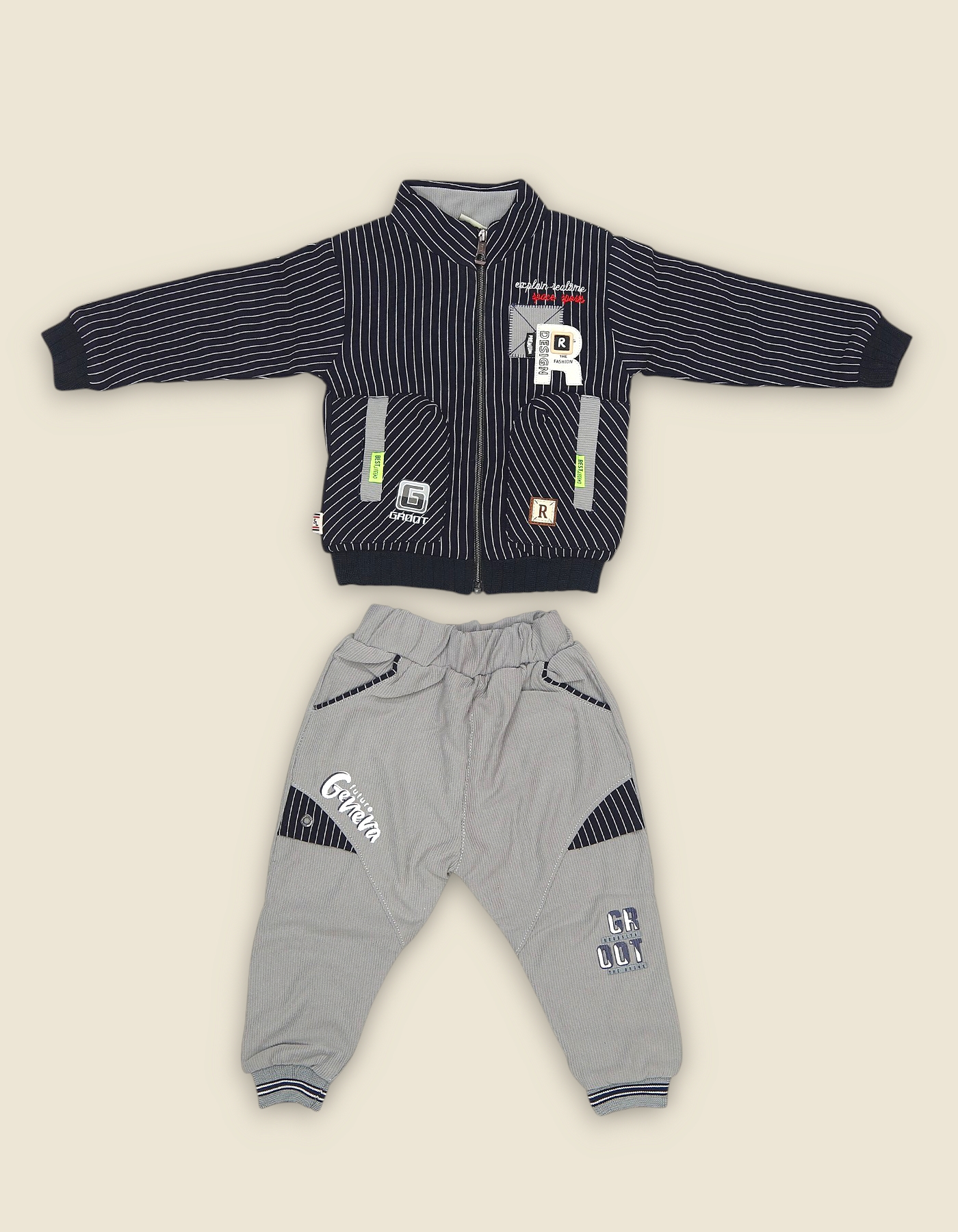 Stylish boys suit with pinstripe jacket and matching pants. Perfect for casual wear, outings and gifting.