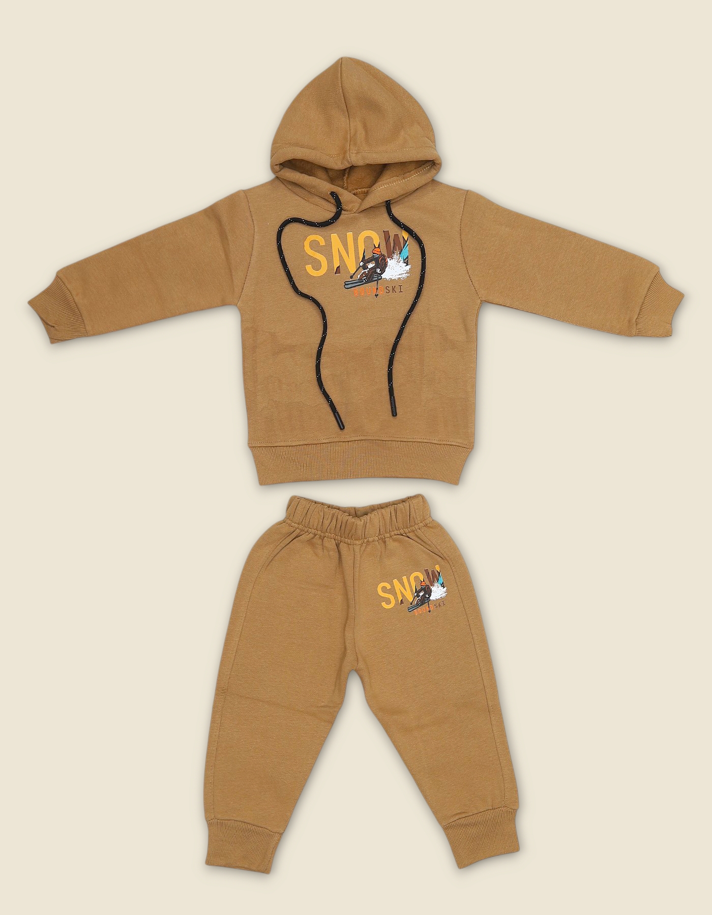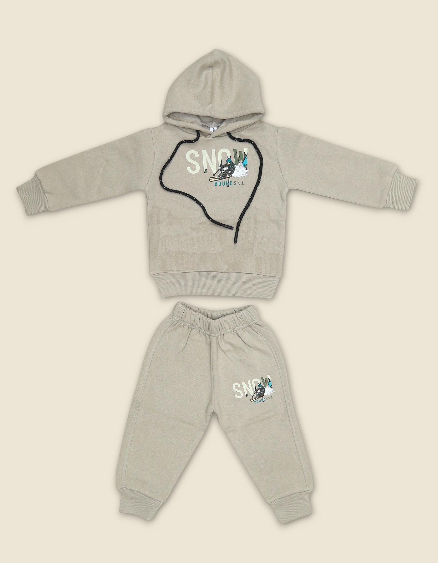 Winter themed boys suit with SNOW Holiday Ski graphic and matching pants. Perfect for cold weather and gifting