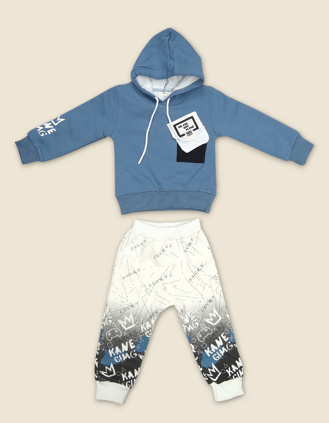 Trendy boys suit with WE ARE YOUNG hoodie and Lucky print pants. Perfect for casual wear and gifting