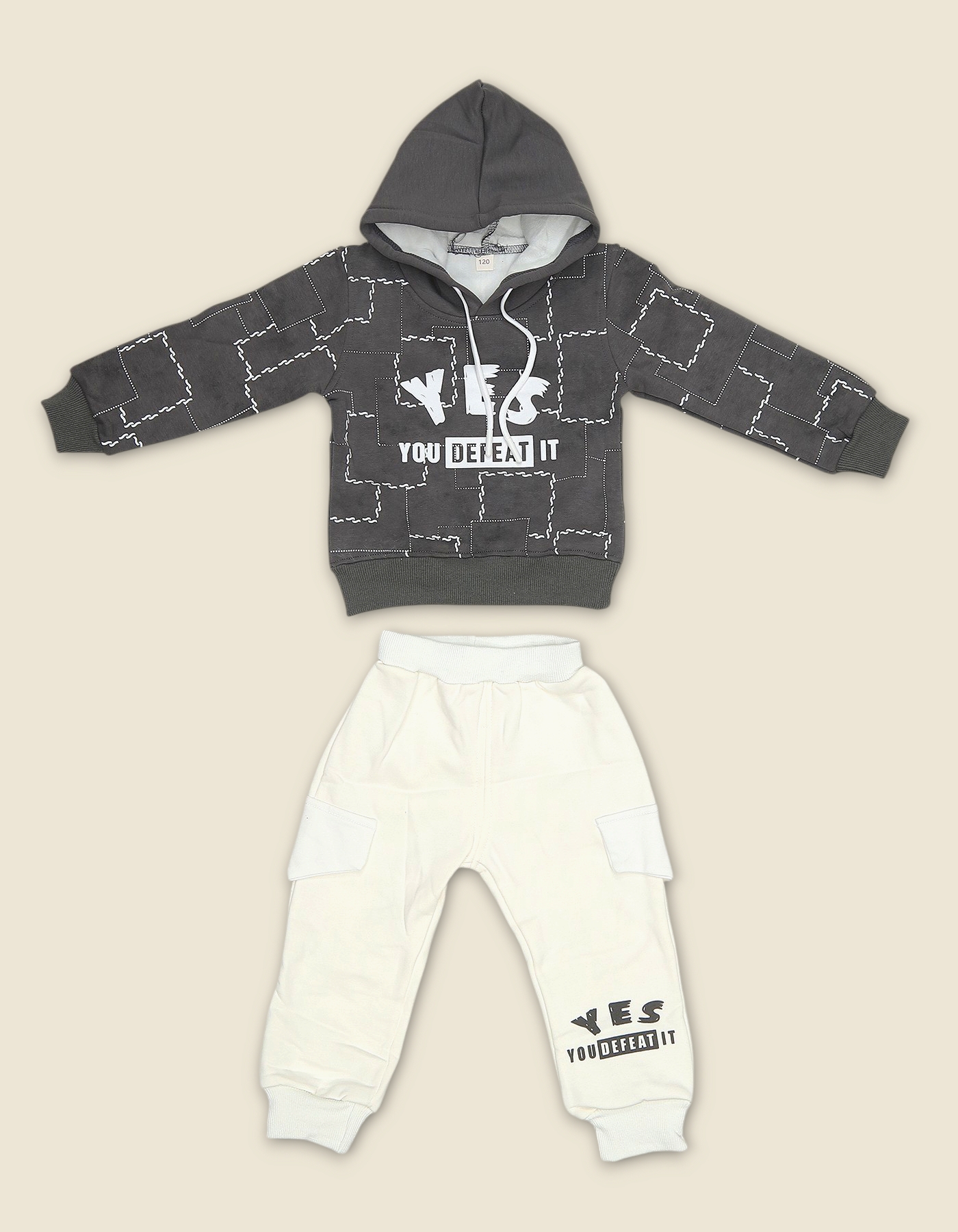 Motivational boys suit with YES YOU DEFEAT IT graphic and matching pants. Perfect for casual wear and gifting