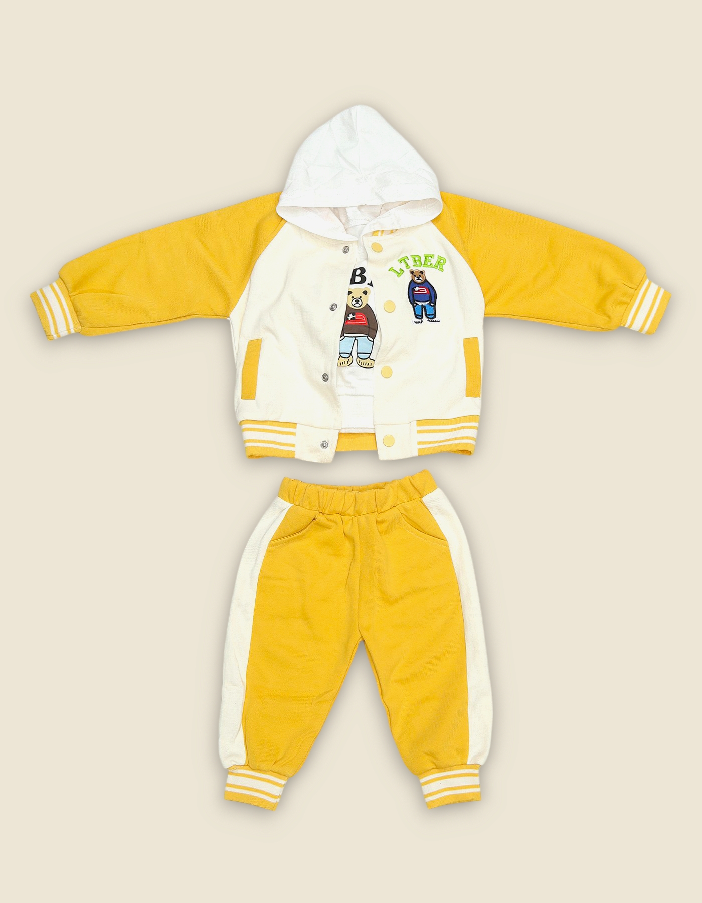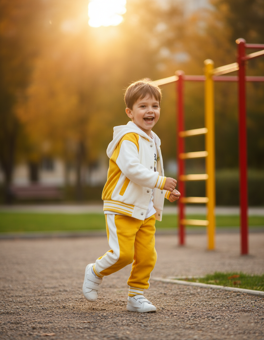 Playful boys suit with hooded jacket and matching pants in bright colors. Perfect for casual wear, outings and gifting.