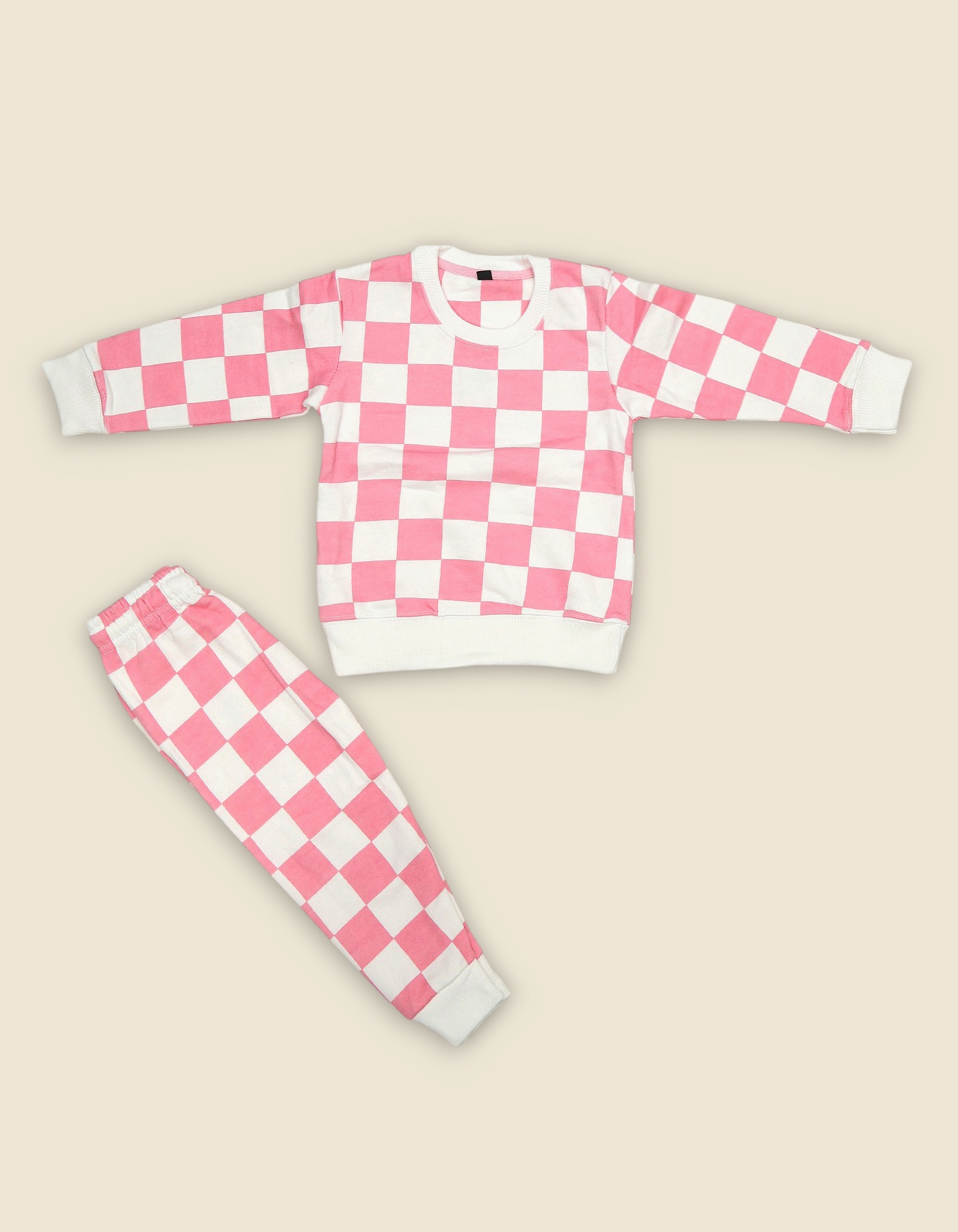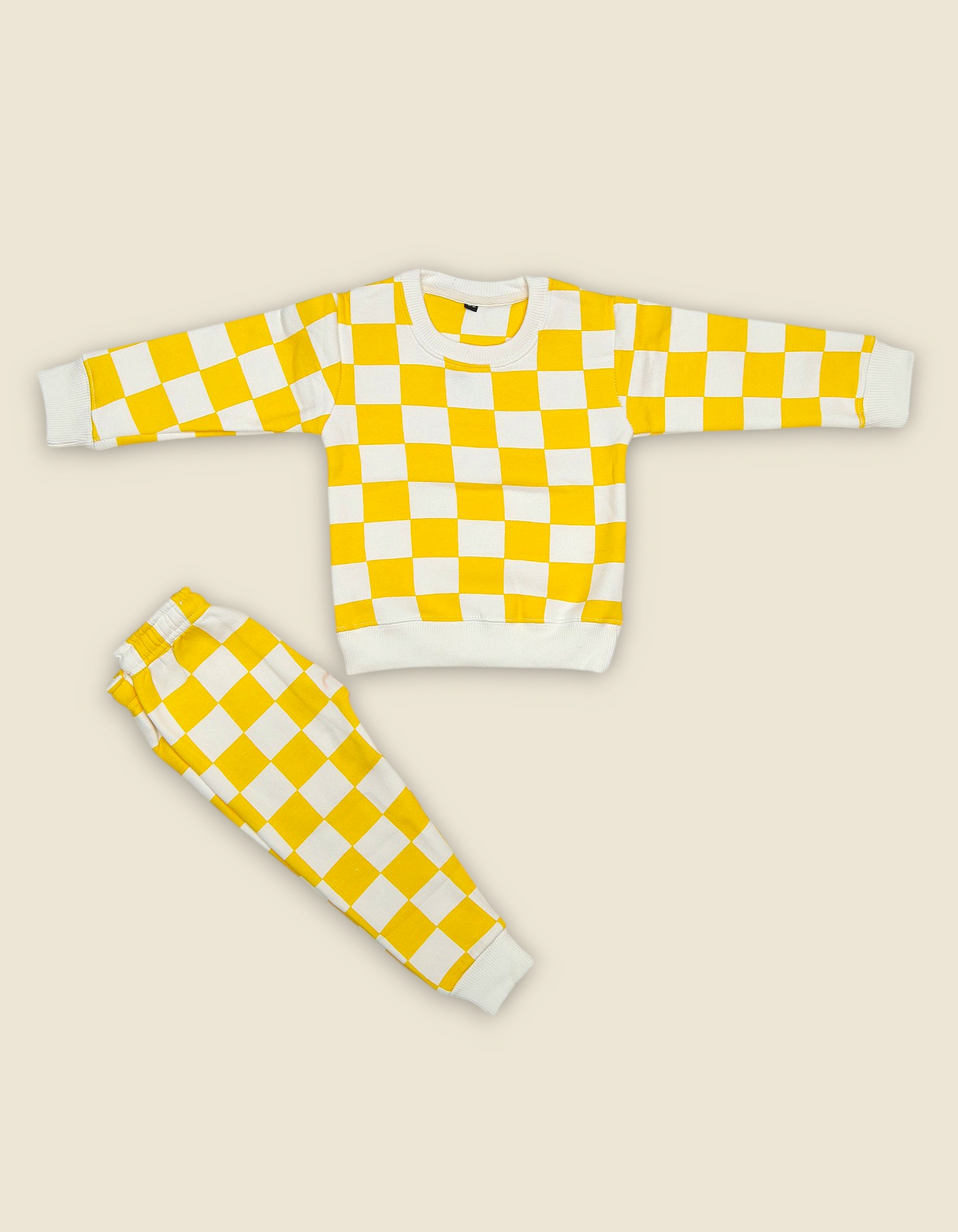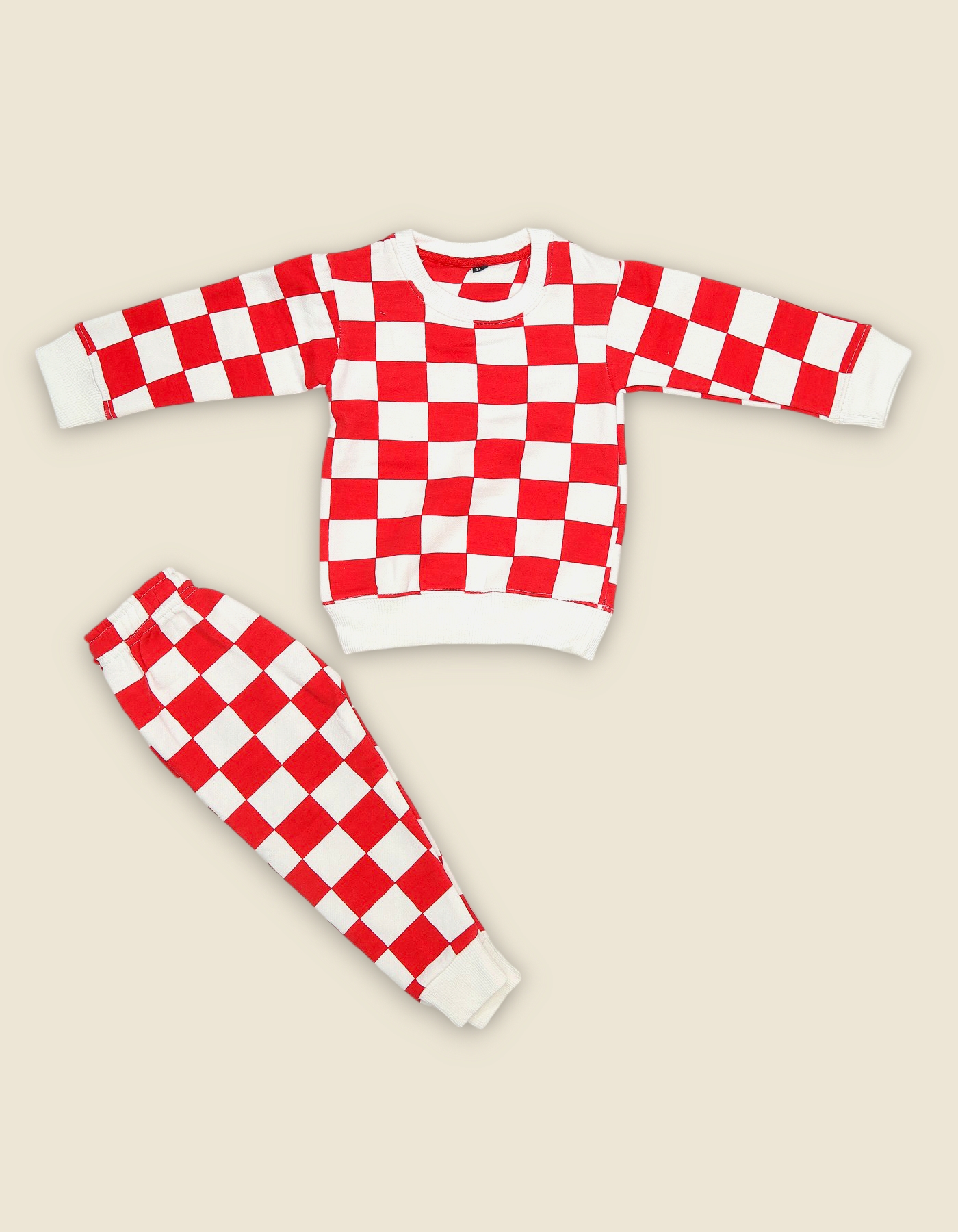 Trendy boys track suit with bold checkerboard design. Comfortable and stylish for casual wear outings and gifting