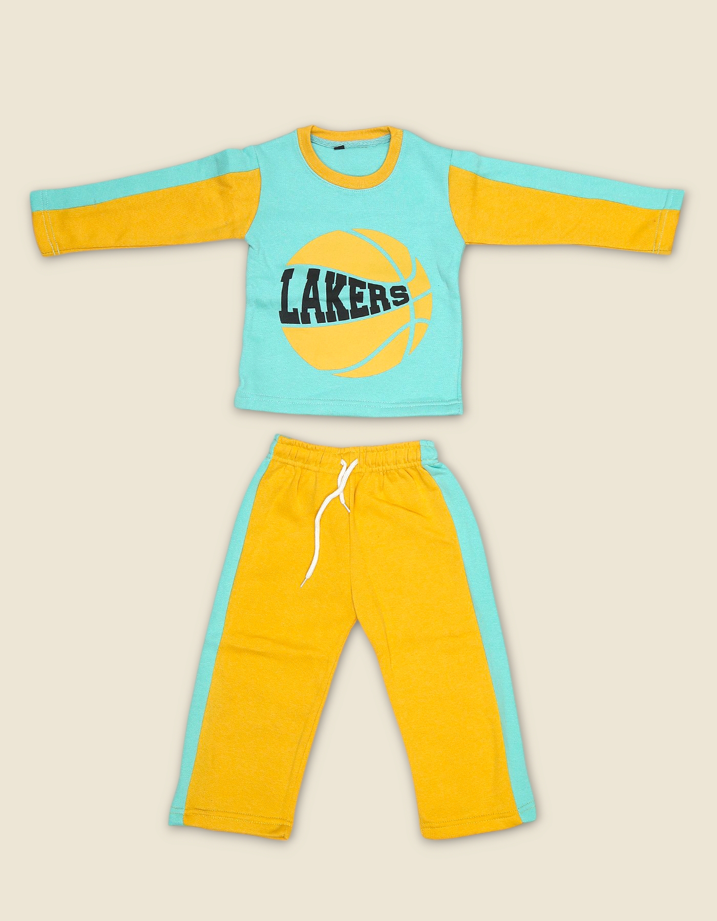 Sporty boys track suit with Lakers basketball graphic sweatshirt and matching pants. Perfect for casual wear playtime and gifting