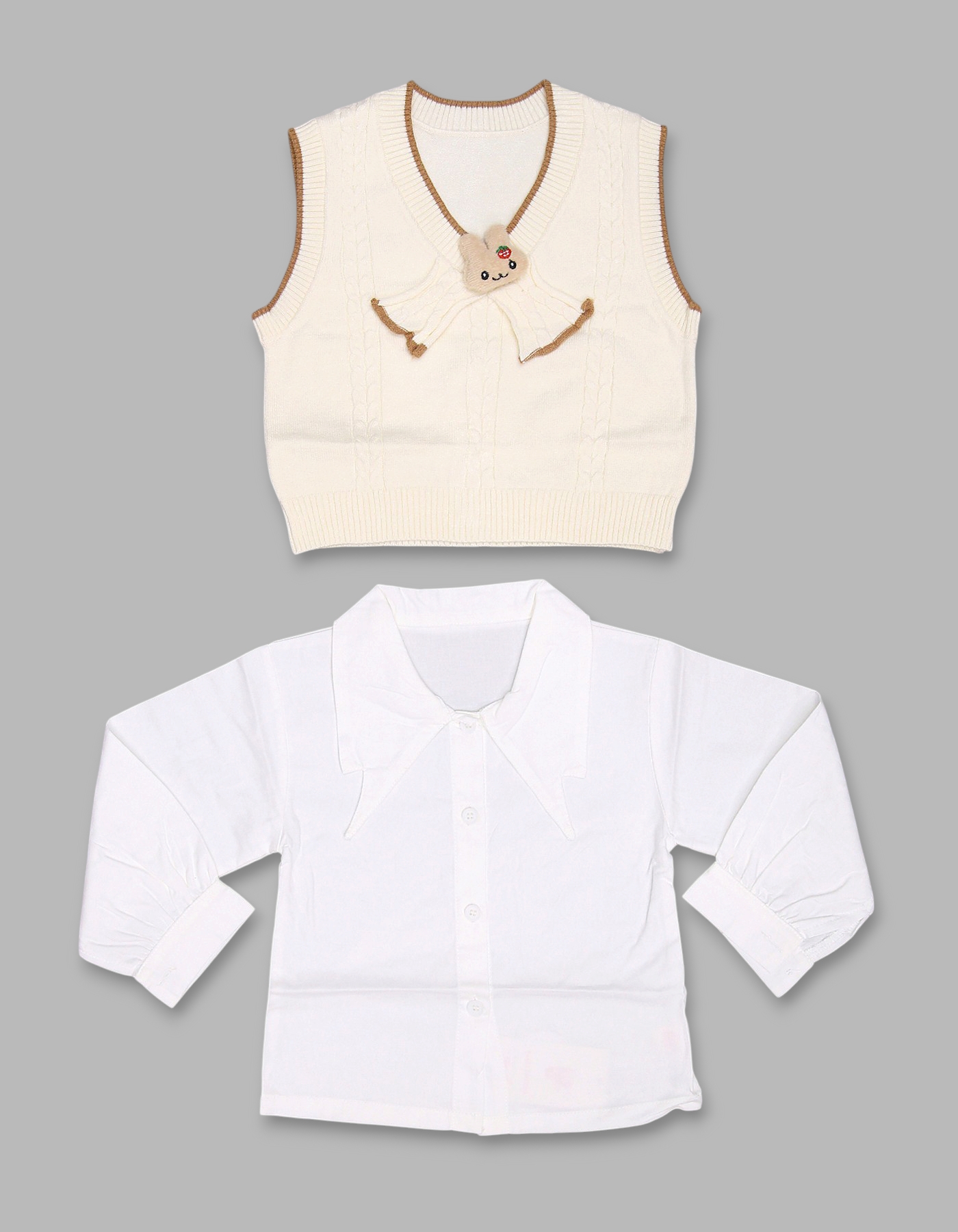 3-Piece Set – Includes woolen vest, cotton shirt & denim pants.