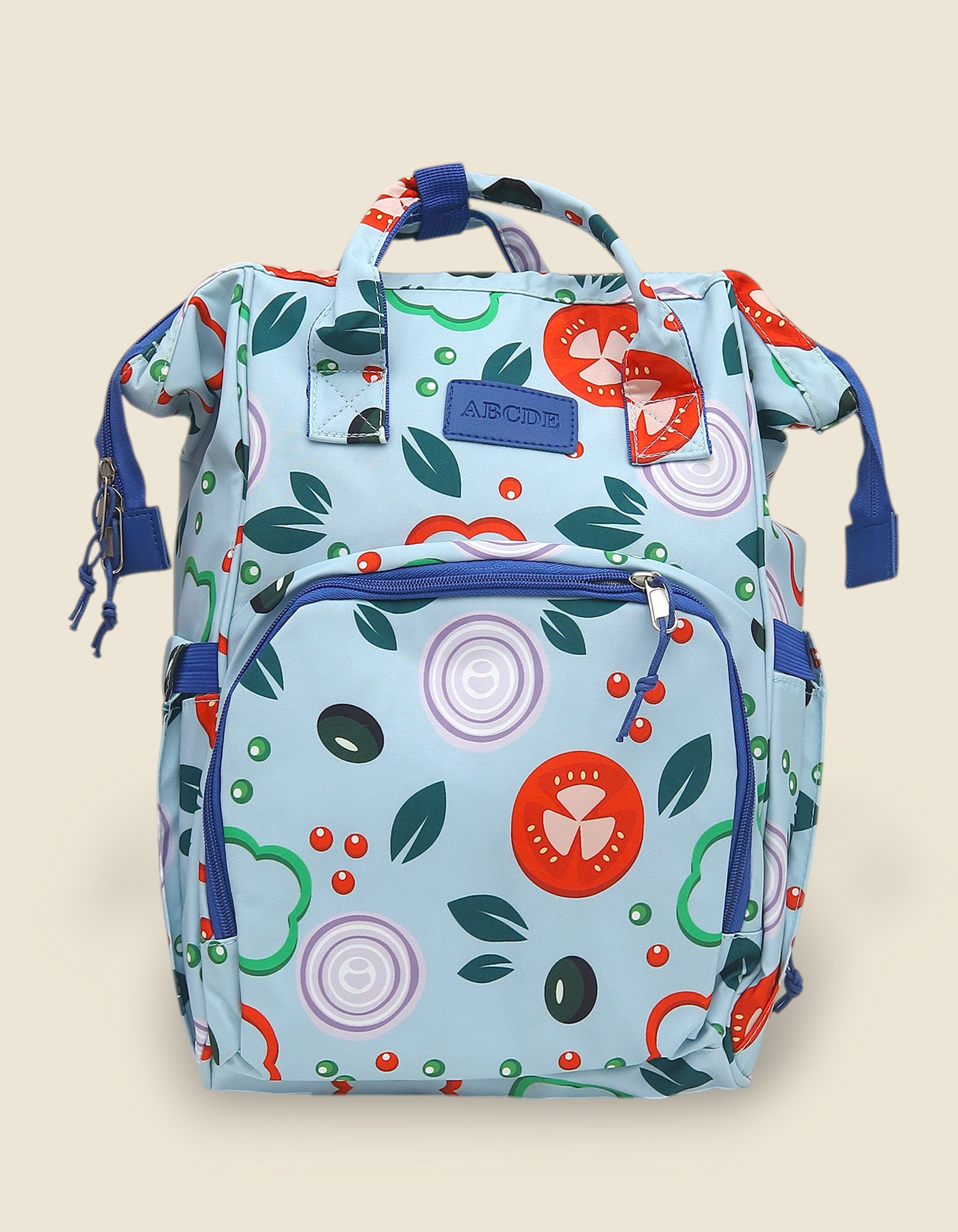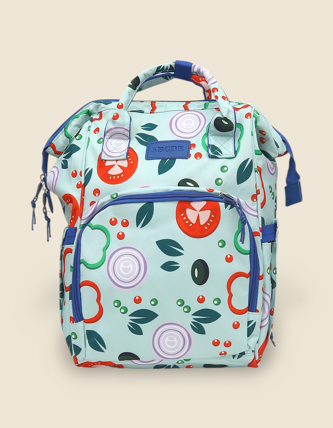 Sky Blue (Space Travel): A beautiful light blue bag featuring a dinosaur astronaut and "Space Travel" graphics.