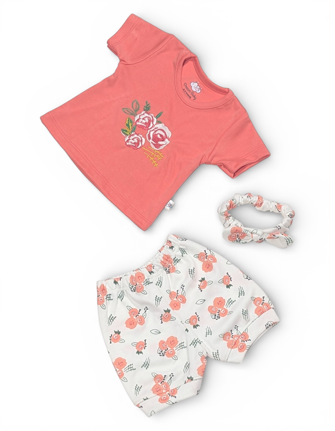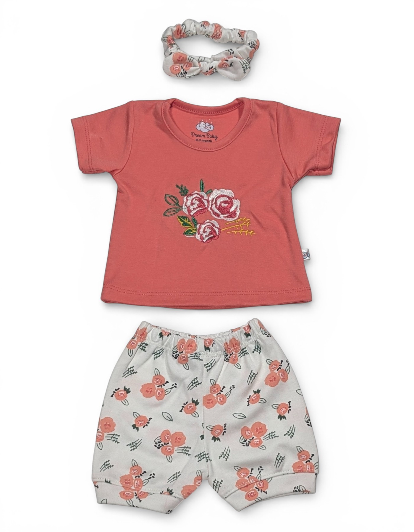 Dress your little princess in timeless elegance with this Peach & White Floral Ruffle Party Frock Set. Designed with a soft peach textured bodice featuring stylish ruffle sleeves, this adorable outfit is beautifully complemented by a flowy white skirt adorned with delicate floral embroidery. The charming flower applique at the waist adds a sweet, eye-catching touch, making it perfect for special occasions. The layered skirt with soft gathers creates a graceful flare, while the matching white leggings ensure comfort and easy movement throughout the day. Crafted from soft, breathable fabric, this outfit keeps your baby girl comfortable while looking picture-perfect.