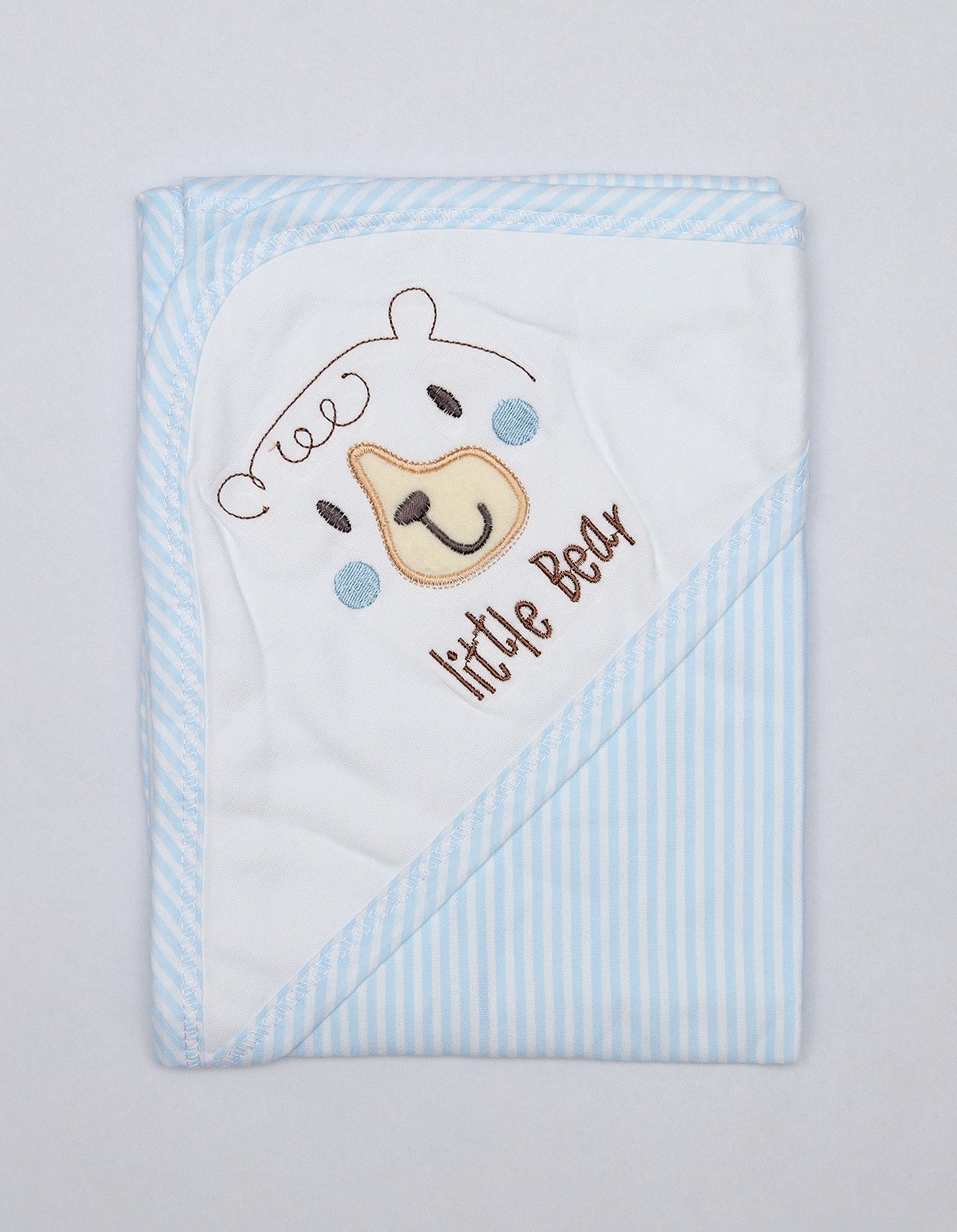 Soft hooded baby napkin with cute bear embroidery and gentle striped trim perfect for newborns and infants