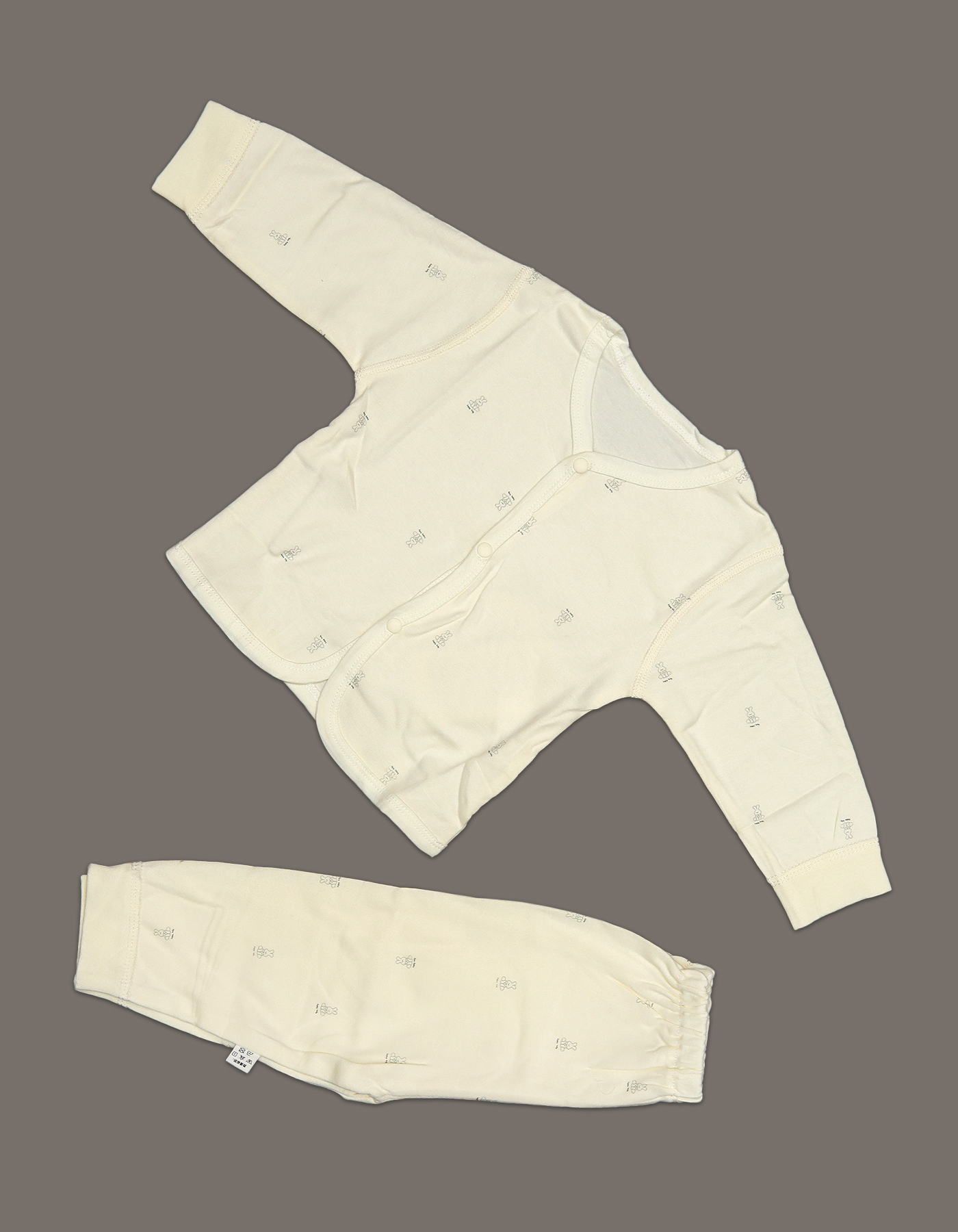 A soft and breathable 2-piece suit designed to keep your baby boy comfortable all day long. The simple front-open design with snap buttons makes dressing hassle-free, while the matching bottoms add a cozy finish.