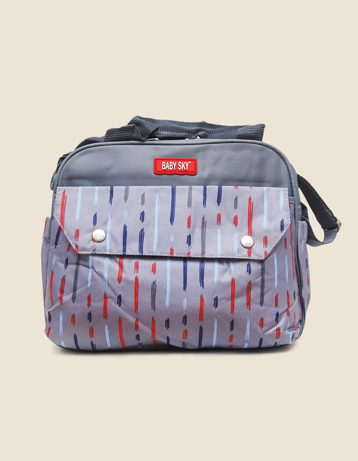 Organize your babys essentials with ease using the Baby Sky Diaper Bag in Dark Grey. Featuring a modern brush stroke pattern in red, blue, and grey tones, this bag combines a stylish look with practical storage. With a spacious interior, side pockets, and a front flap compartment, it’s perfect for carrying diapers, bottles, wipes, and toys on the go. Lightweight yet durable, it’s designed for both daily use and travel.