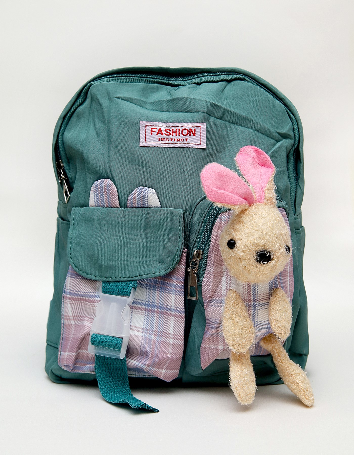 Trendy Design – Stylish plaid details with a soft bunny charm