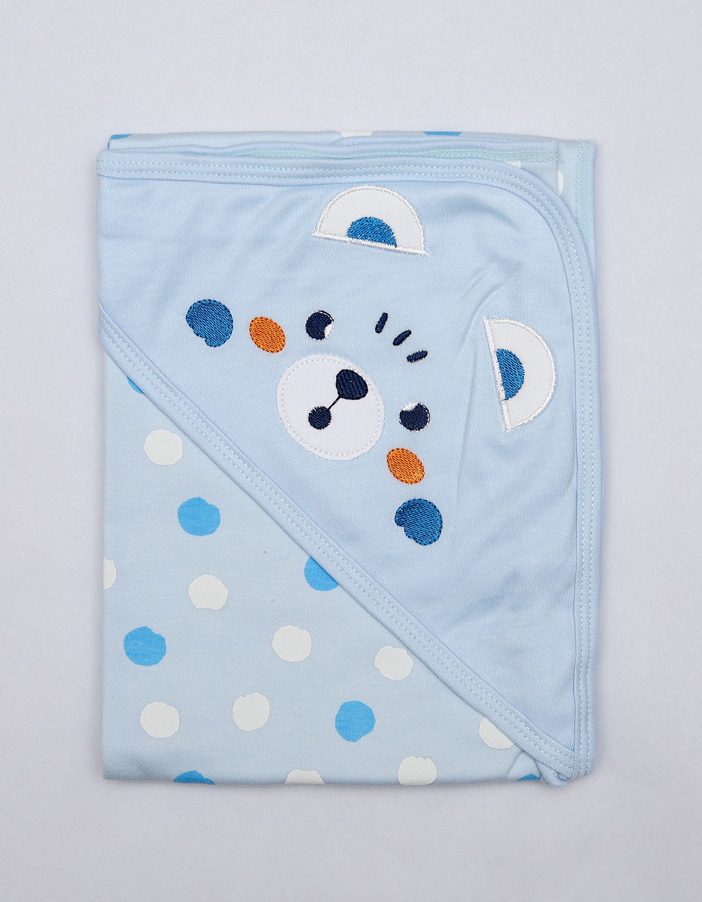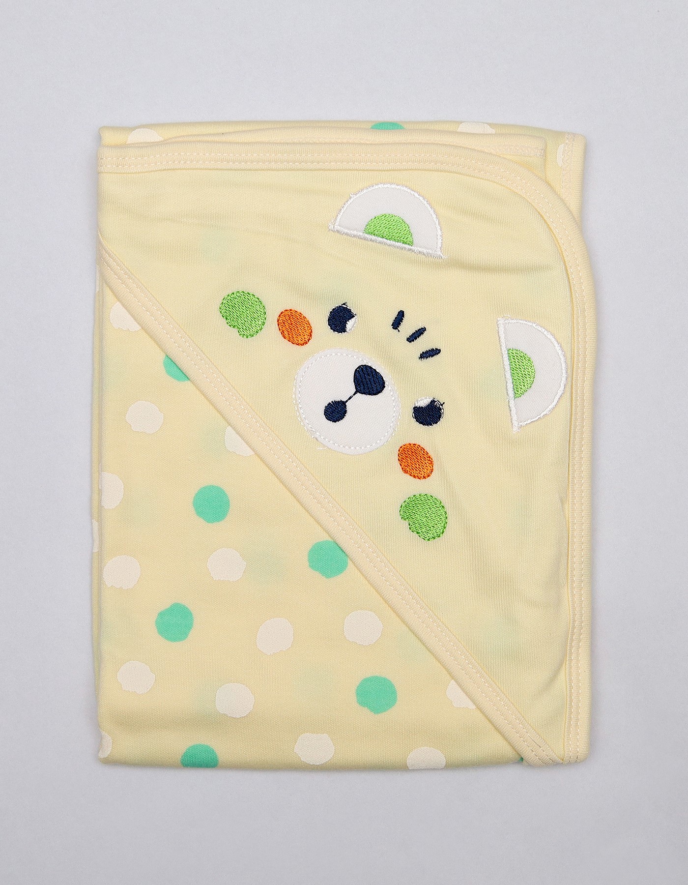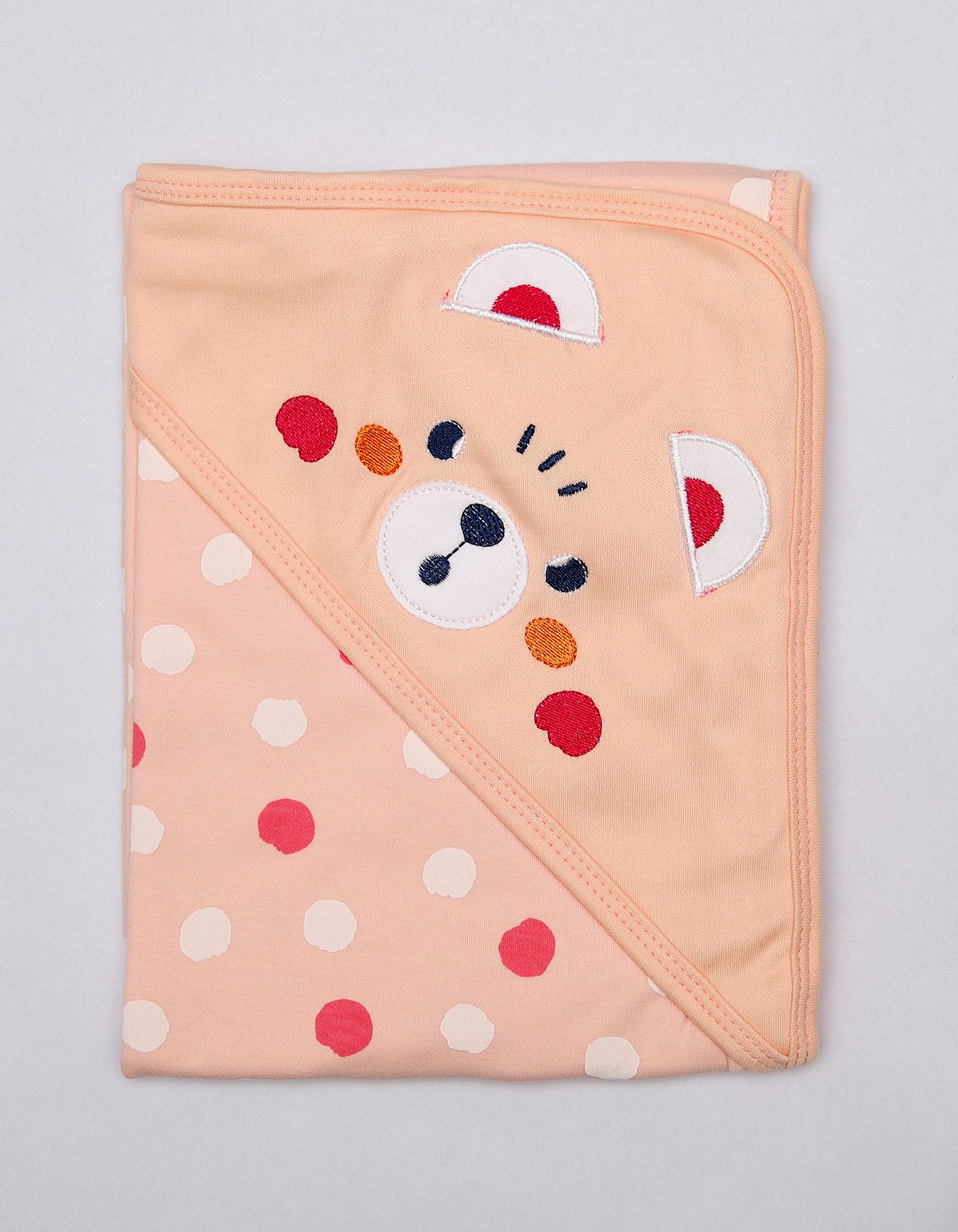 Naram hooded baby napkin with playful bear face embroidery and polka dot print perfect for newborns and infants