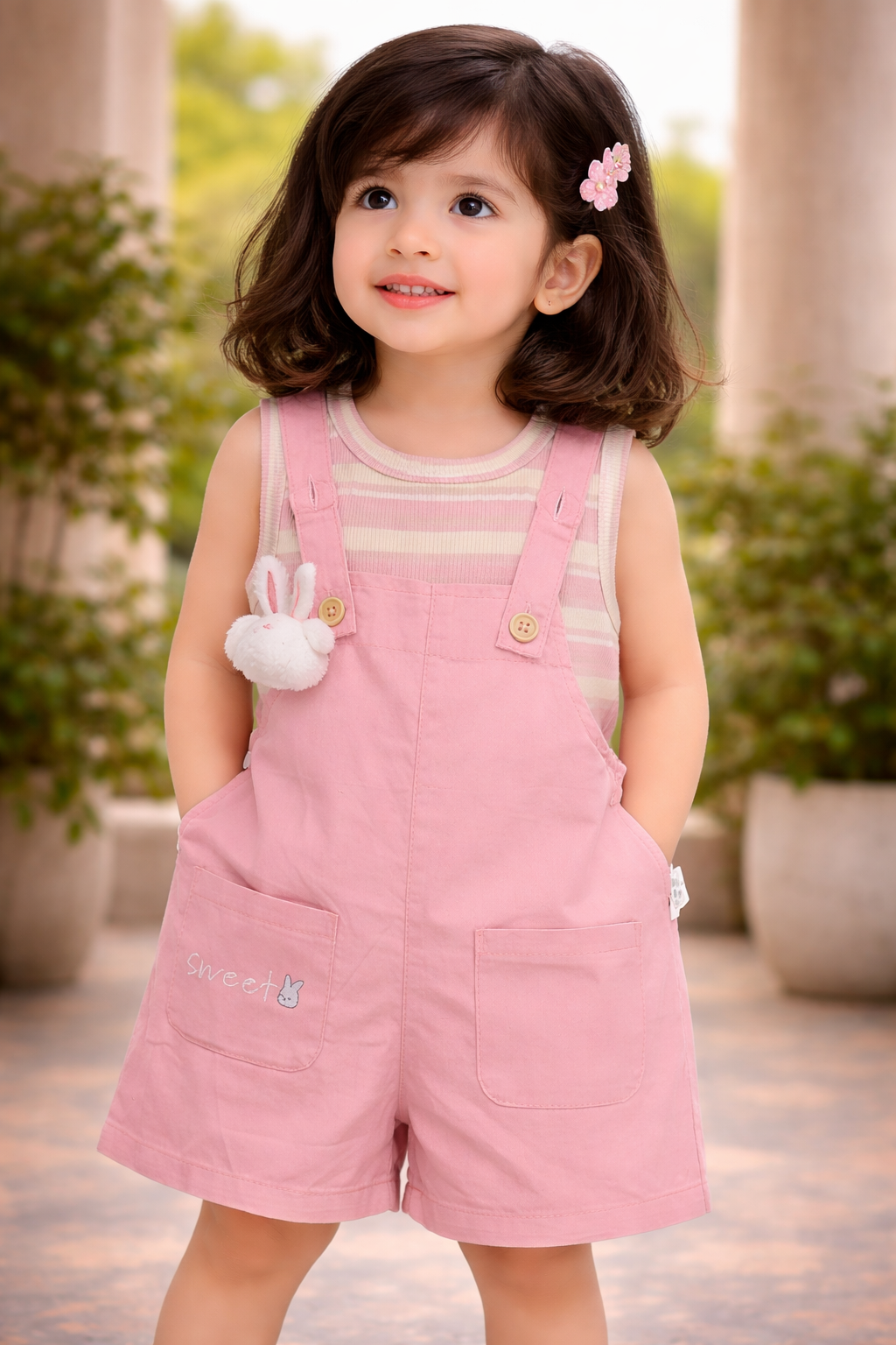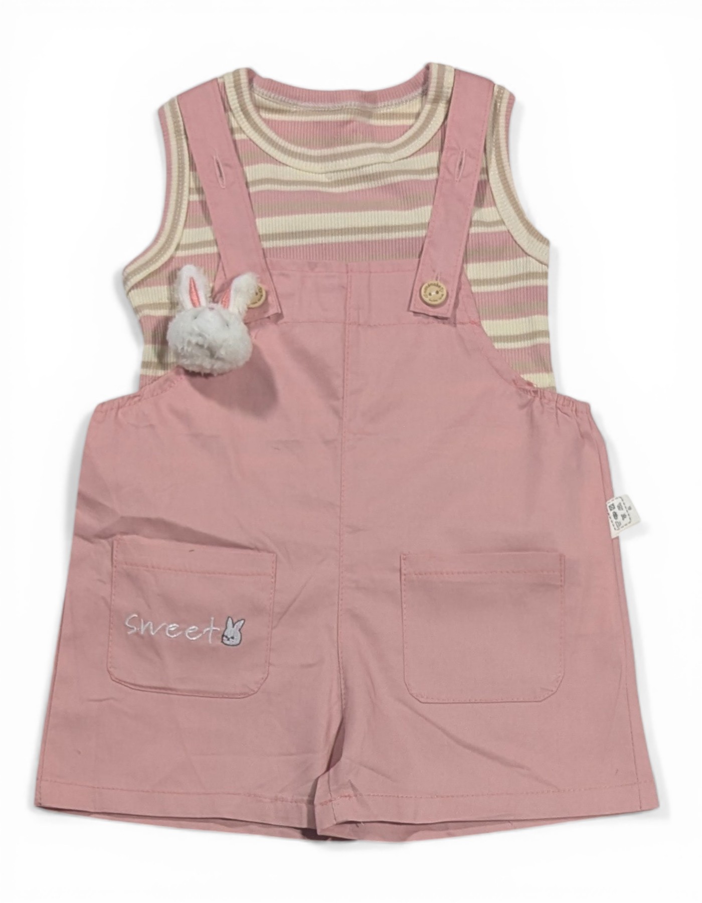 "Some-Bunny Sweet" 2-Piece Overall & Ribbed Tank Set Add a touch of woodland wonder to her wardrobe with this darling two-piece set! Featuring unique 3D bunny ears and a plush friend tucked into the pocket, this outfit is designed for the little girl who loves to dream, play, and hop around in style.