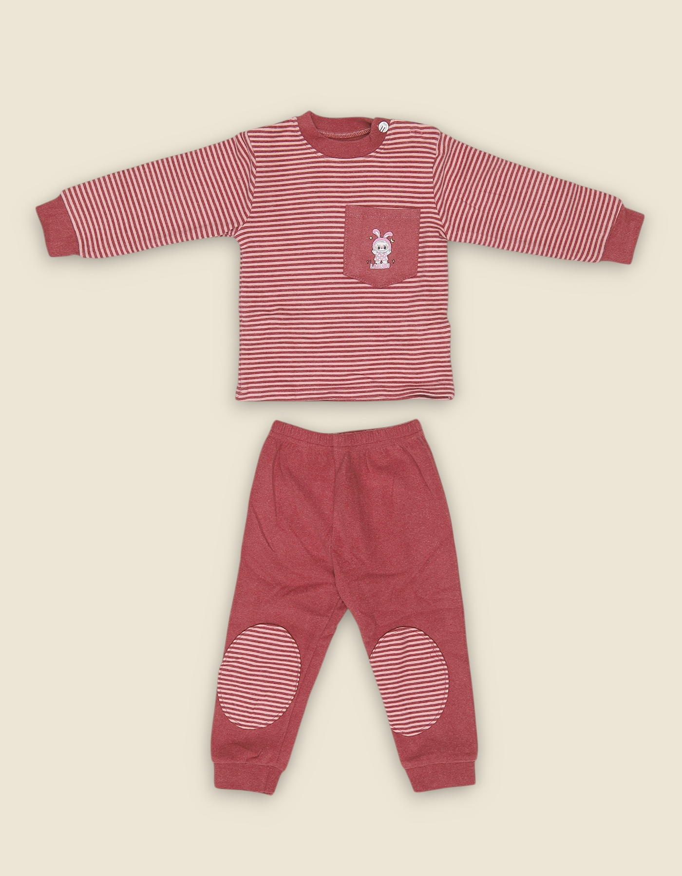 Soft girls fleece suit with striped bunny pocket top and matching pants. Perfect for winter wear outings and gifting