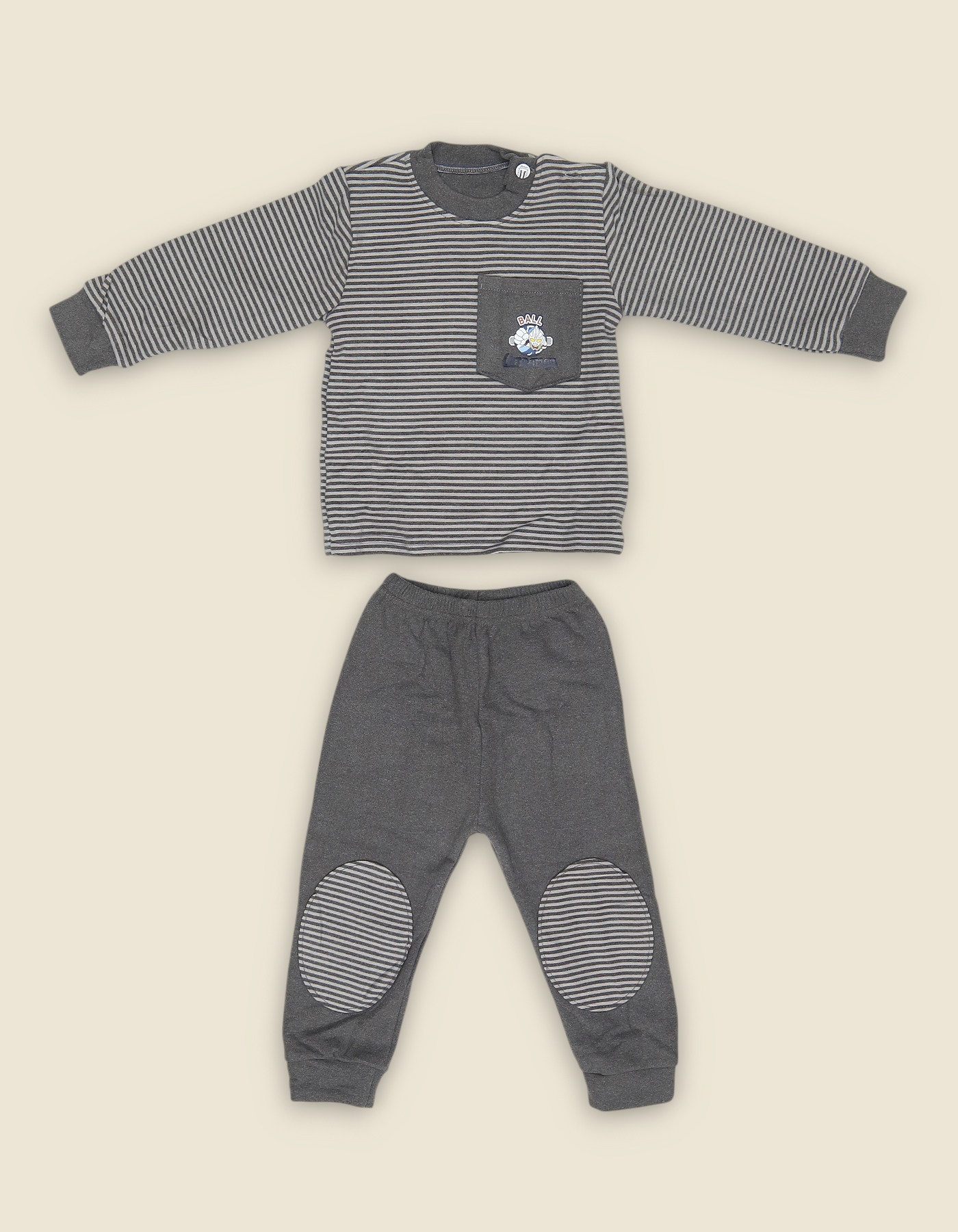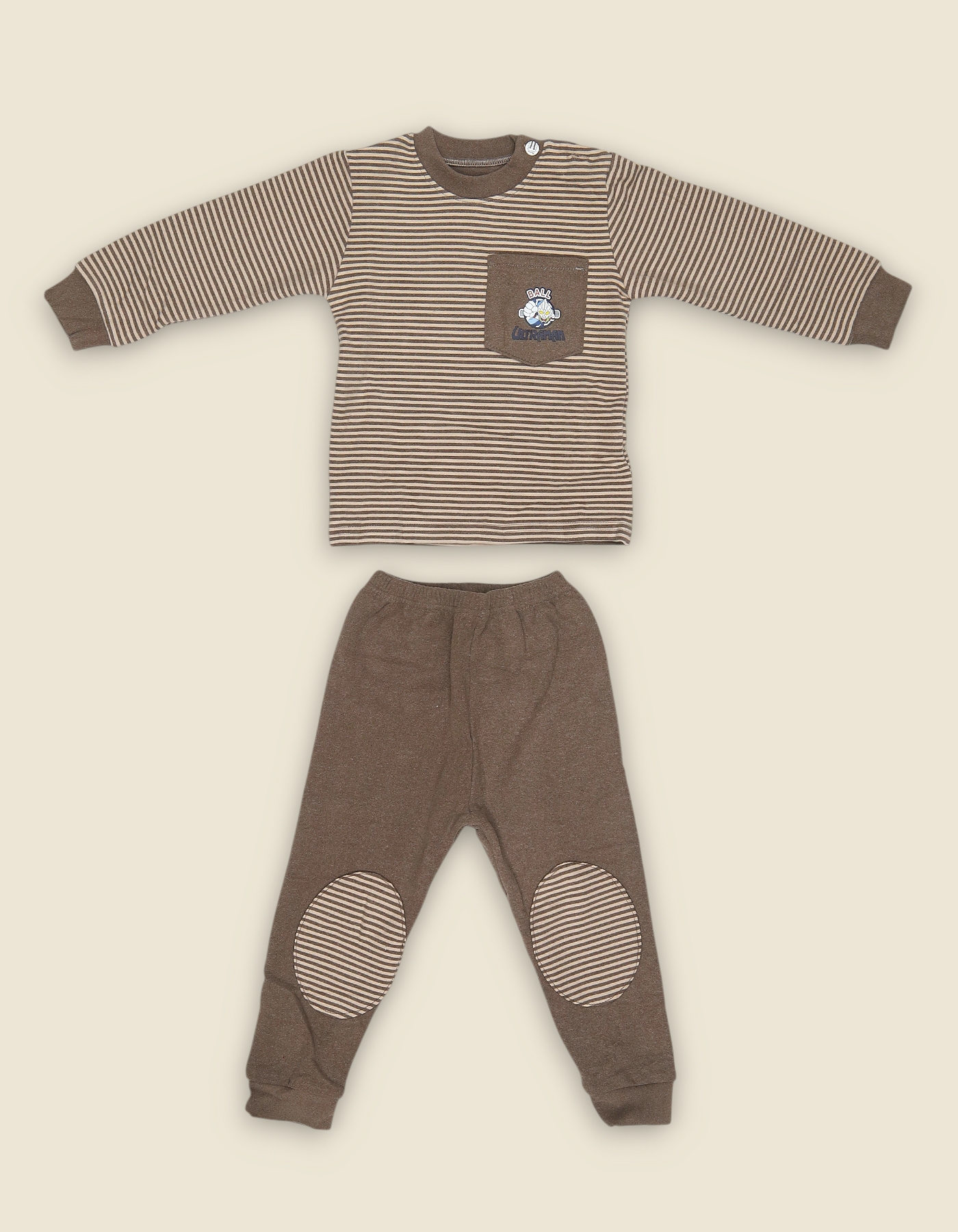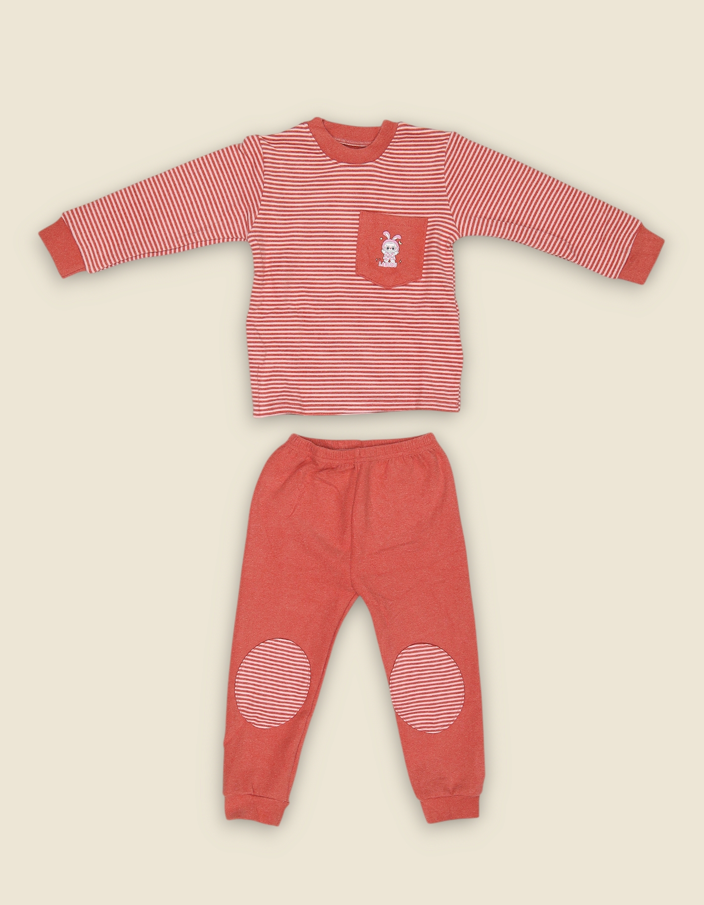 Soft girls fleece suit with striped bunny pocket top and matching pants. Perfect for winter wear outings and gifting