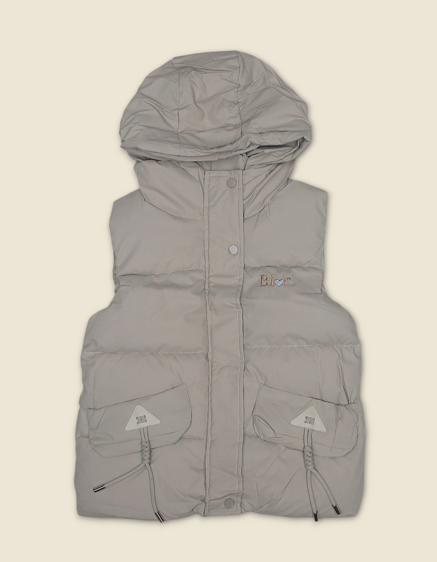 Stylish girls winter vest with quilted design and Bior embroidery. Perfect for layering in cold weather