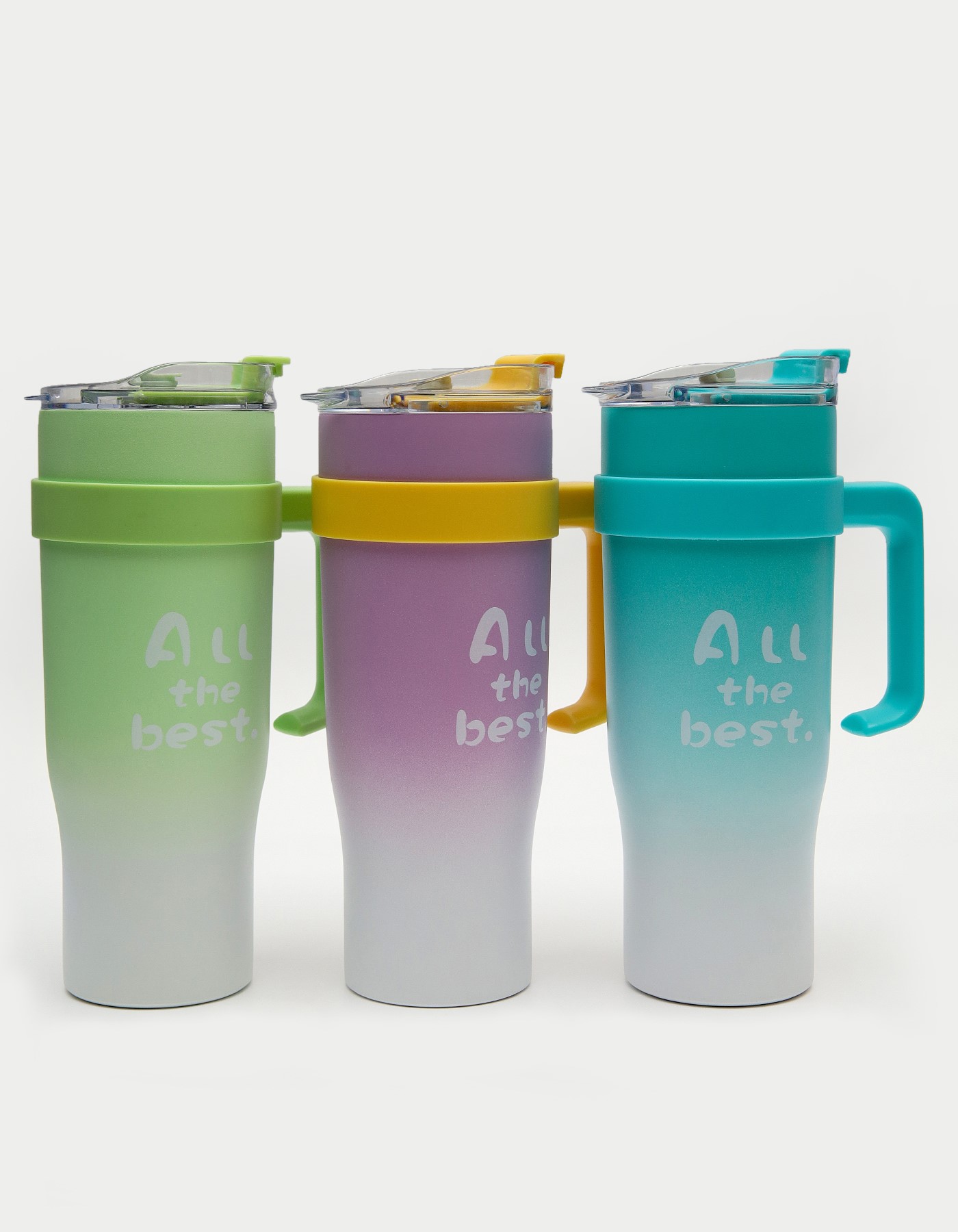 Stay refreshed in style with this colorful gradient travel mug. Designed with a sturdy handle, secure lid, and a sleek ombre finish, this mug is perfect for coffee, tea, or any beverage on the go. Available in green, purple, and blue, it’s both practical and trendy for daily use, travel, or gifting.