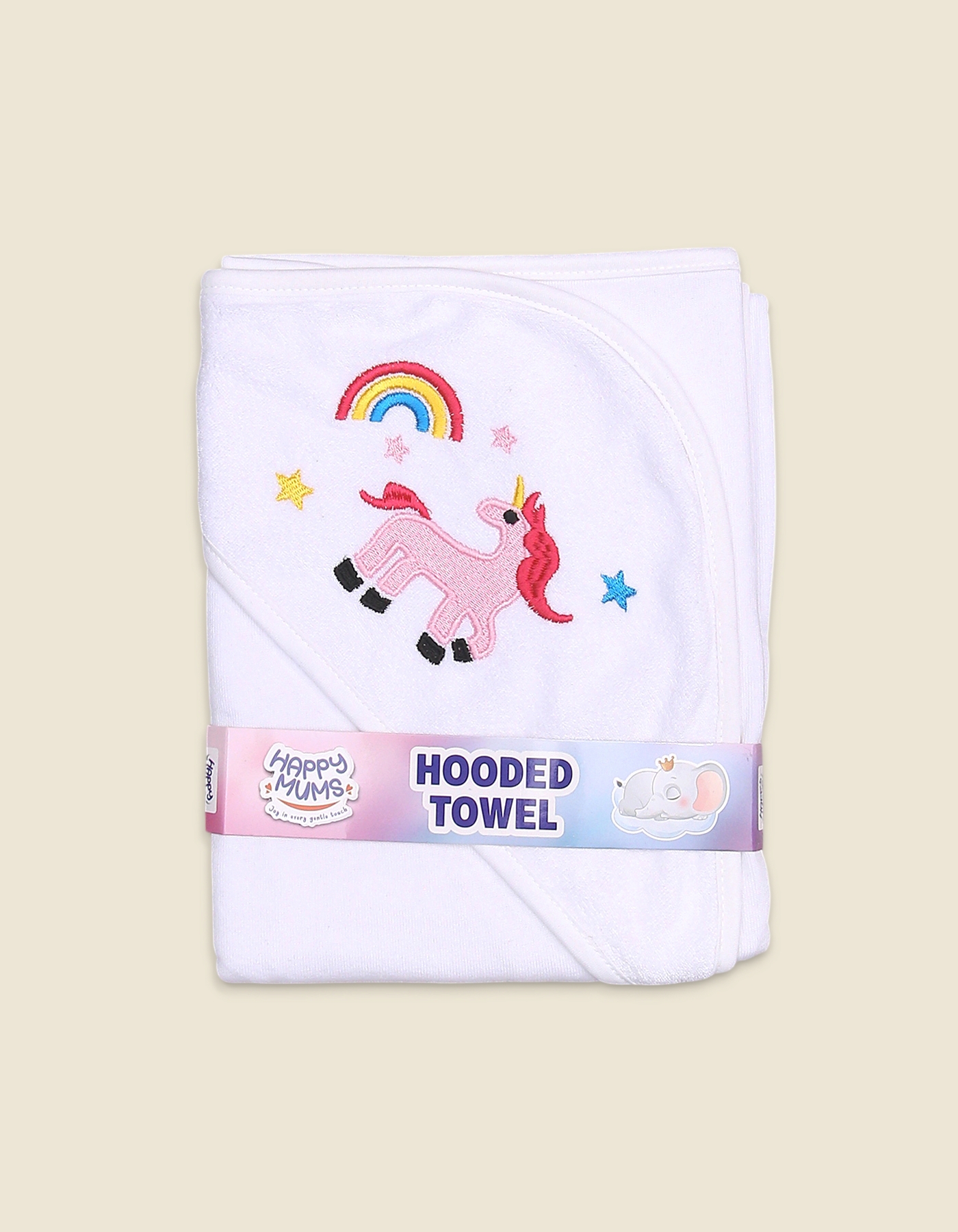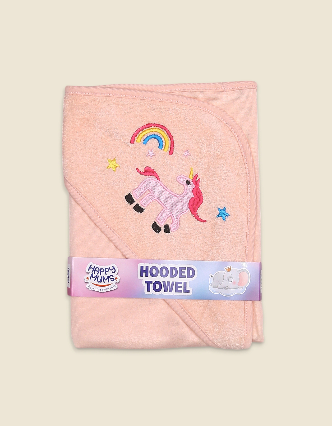 Turn bath time into magical fun with this baby pink hooded towel featuring a cute unicorn, rainbow, and star embroidery. Crafted from soft and absorbent fabric, it keeps your baby warm and cozy while drying quickly.