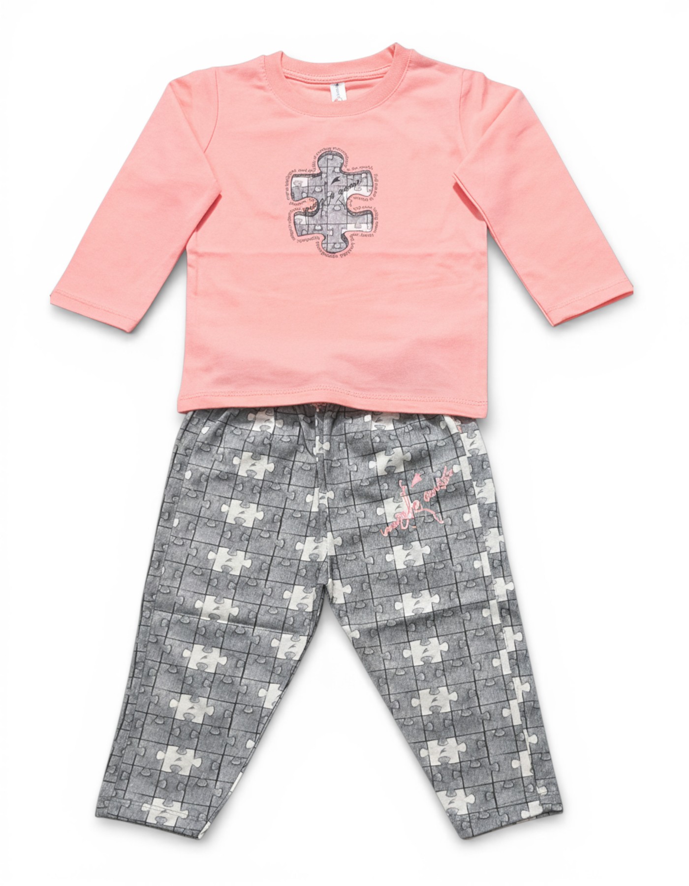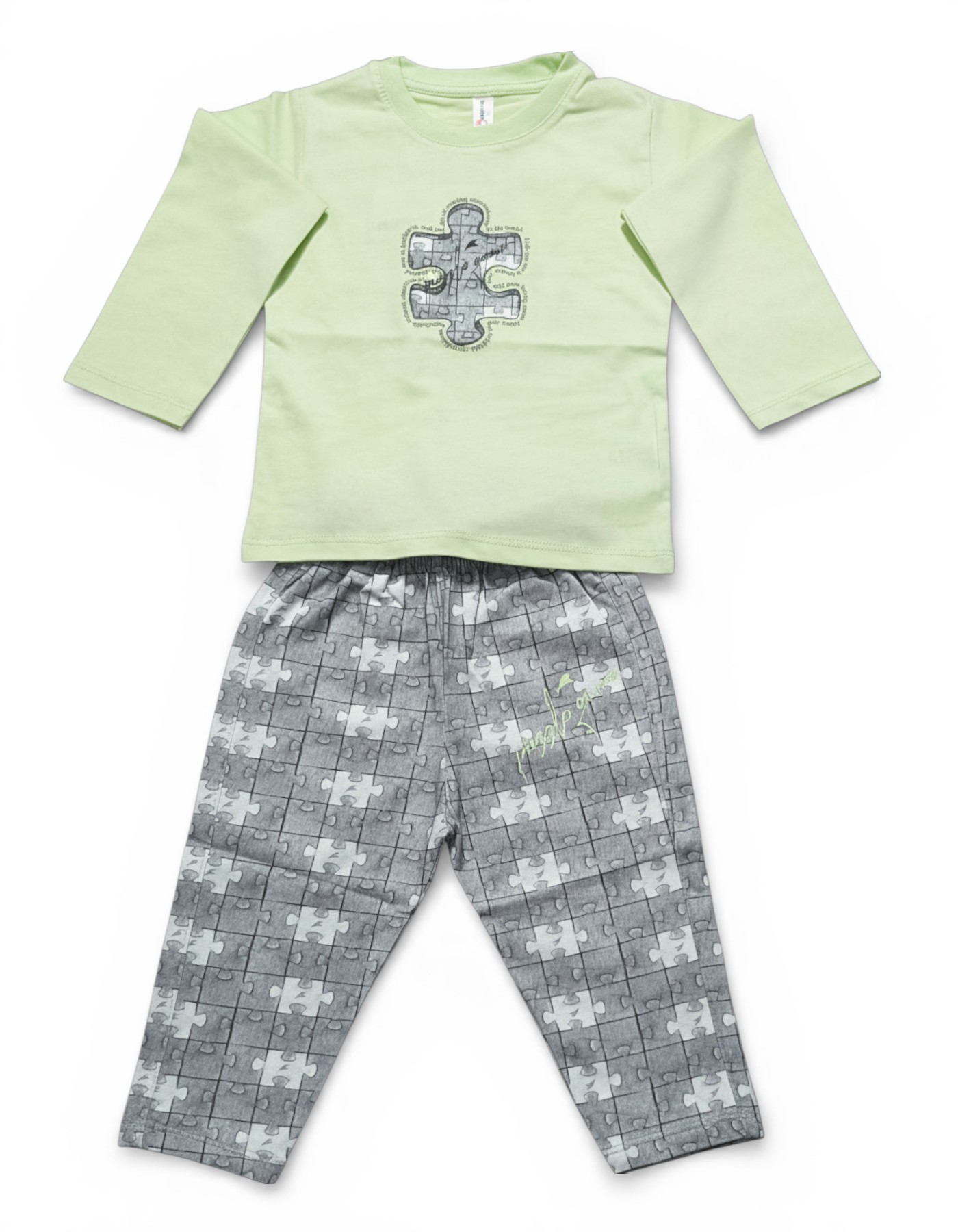 Brighten their wardrobe with this coordinated two-piece set in a striking solar yellow. The long-sleeve crewneck features a unique, oversized puzzle piece graphic on the chest with intricate monochrome detailing. Paired with matching yellow joggers, the set is completed by a vertical "AURA" graphic on the leg for a modern, cohesive look. Crafted for comfort, this vibrant outfit is perfect for active play or casual lounging.