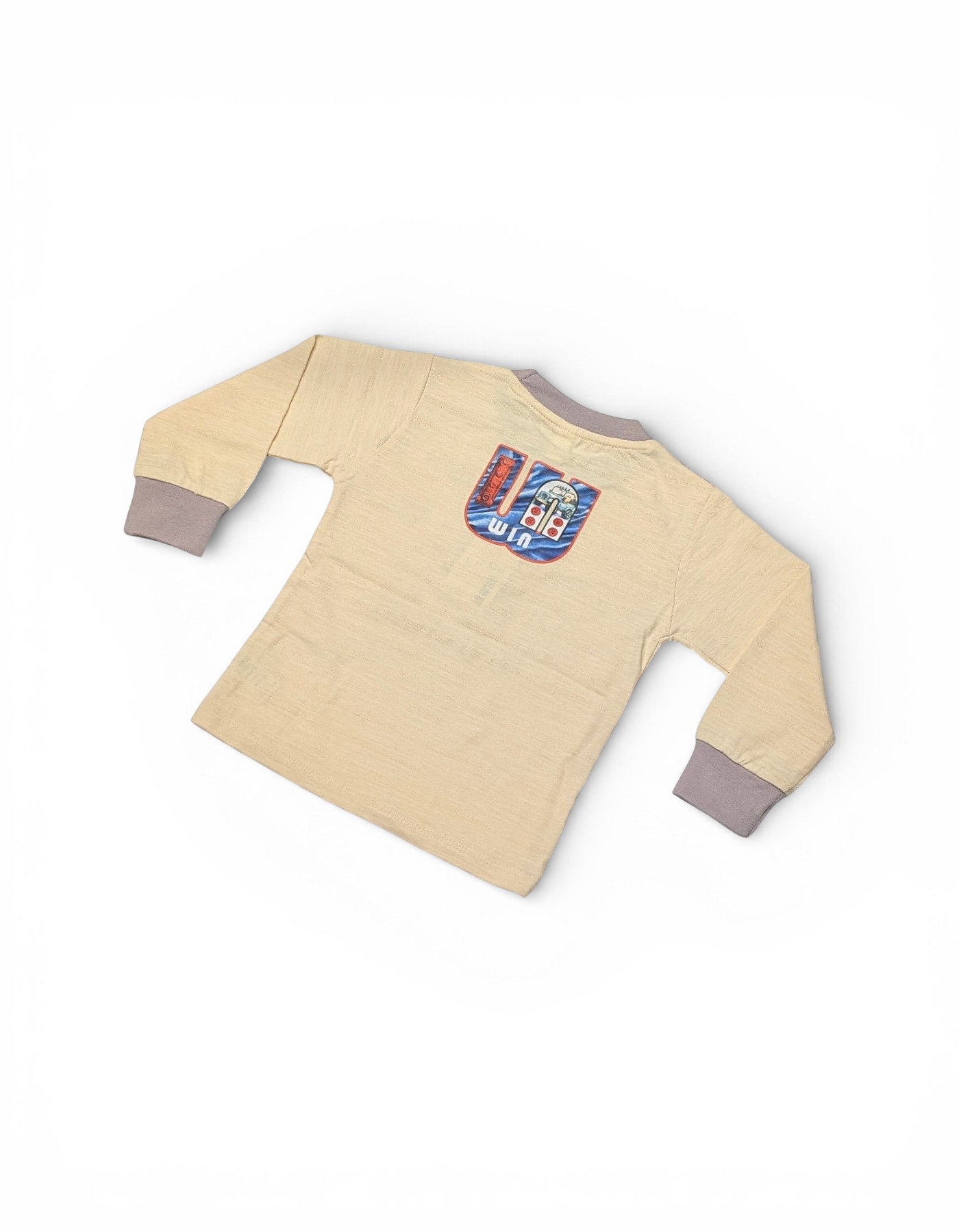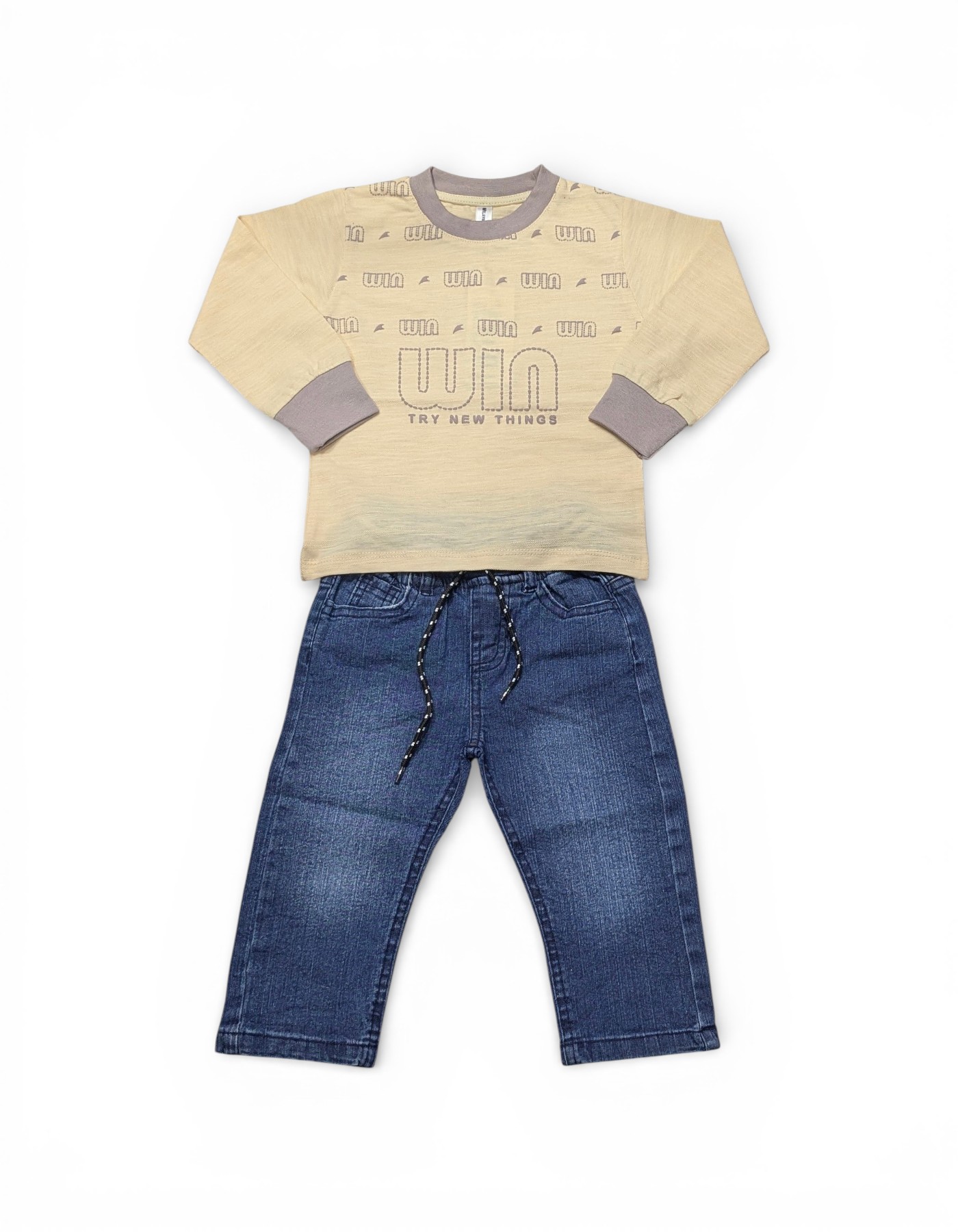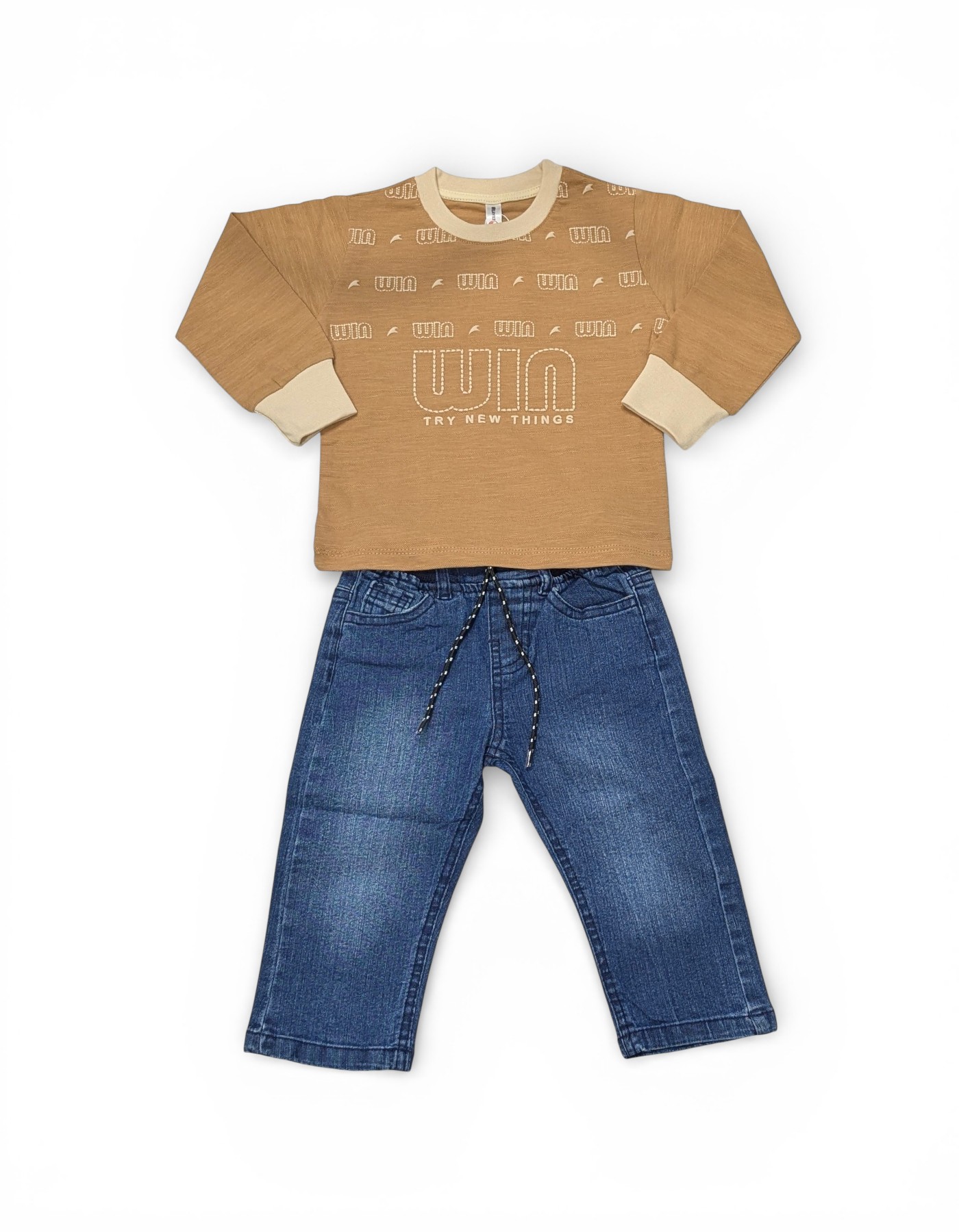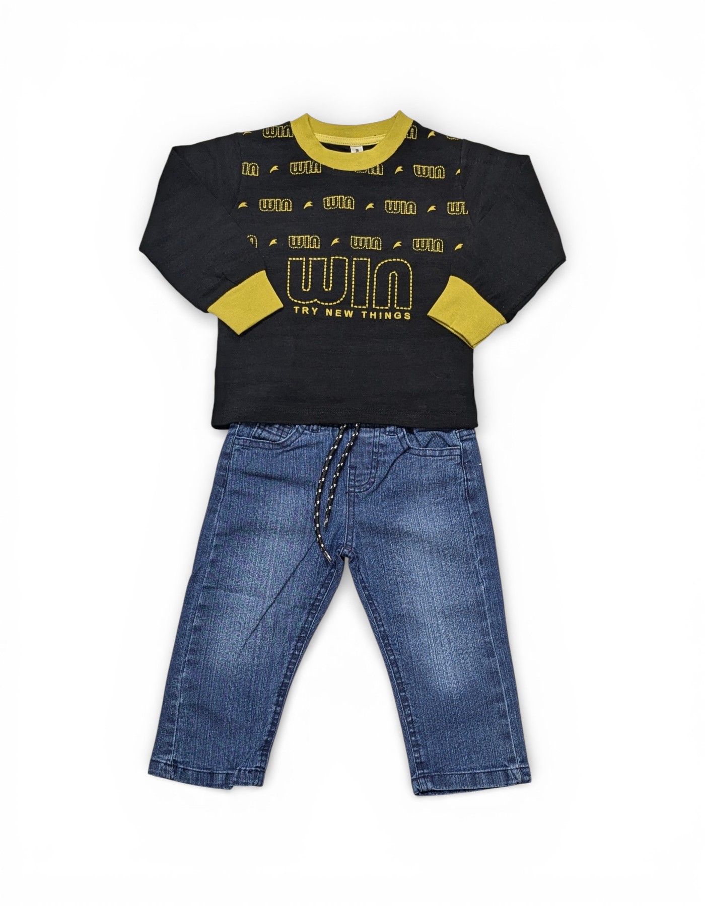 Set Includes: 1x Graphic Long-Sleeve Shirt, 1x Denim Trousers.
