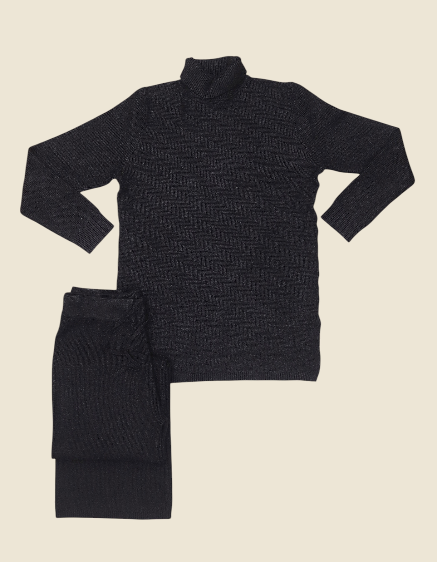 2-Piece Set: Includes a full-sleeve turtle-neck sweater and matching trousers.