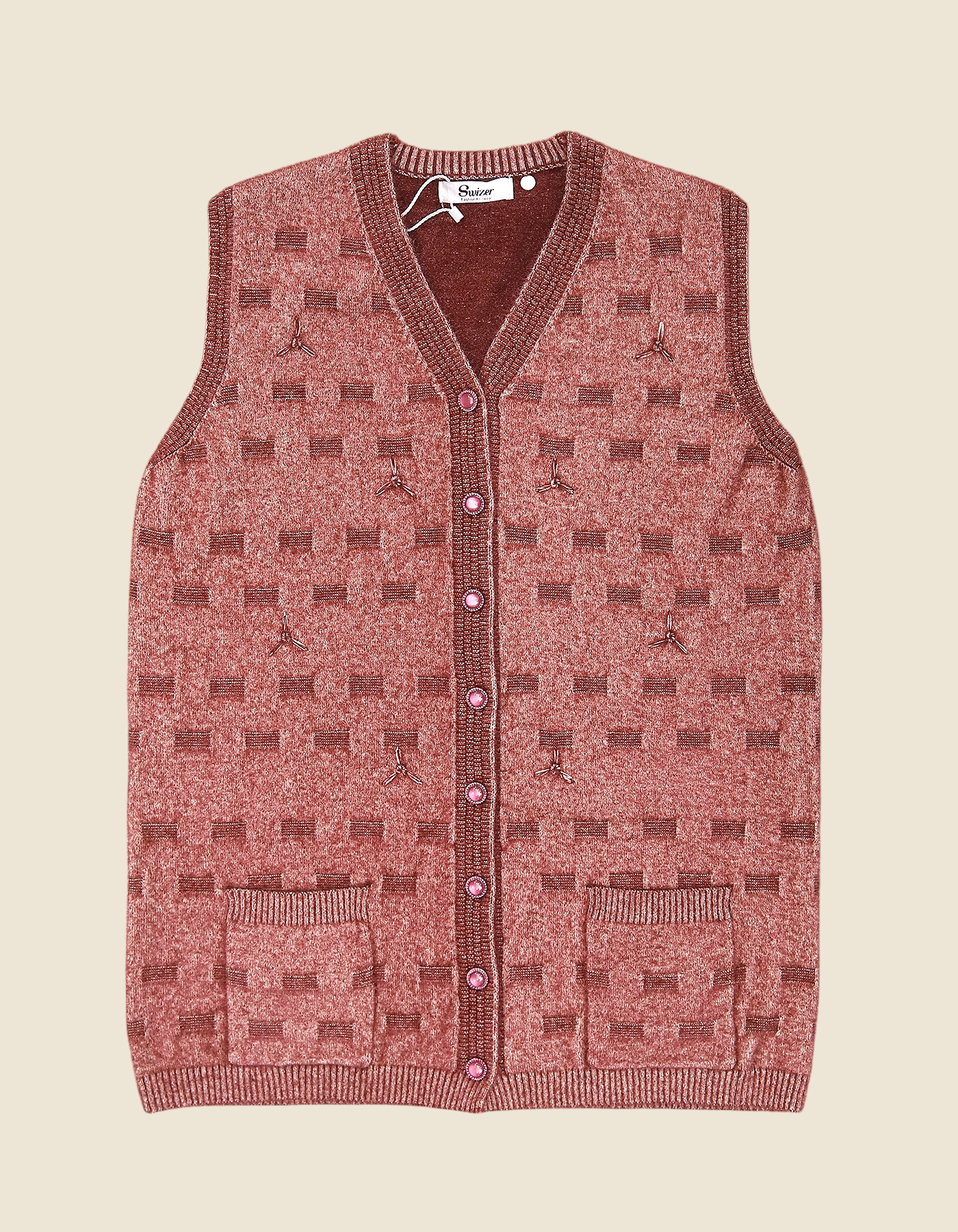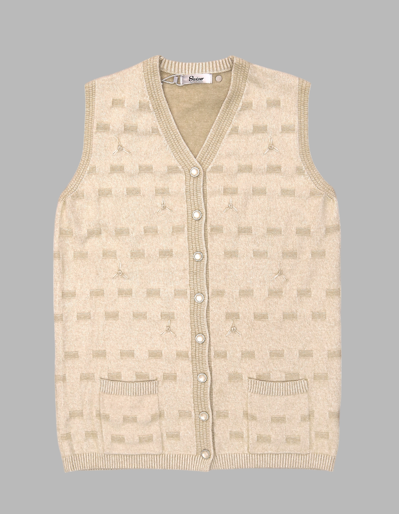 Stay stylish and cozy with this sleeveless woolen sweater vest, designed with a unique geometric knit texture and button-down front. Featuring two practical front pockets, it offers both warmth and functionality, making it a versatile layering piece for winter. Perfect to wear over shirts, kurtas, or turtlenecks, this vest blends traditional comfort with a modern touch.