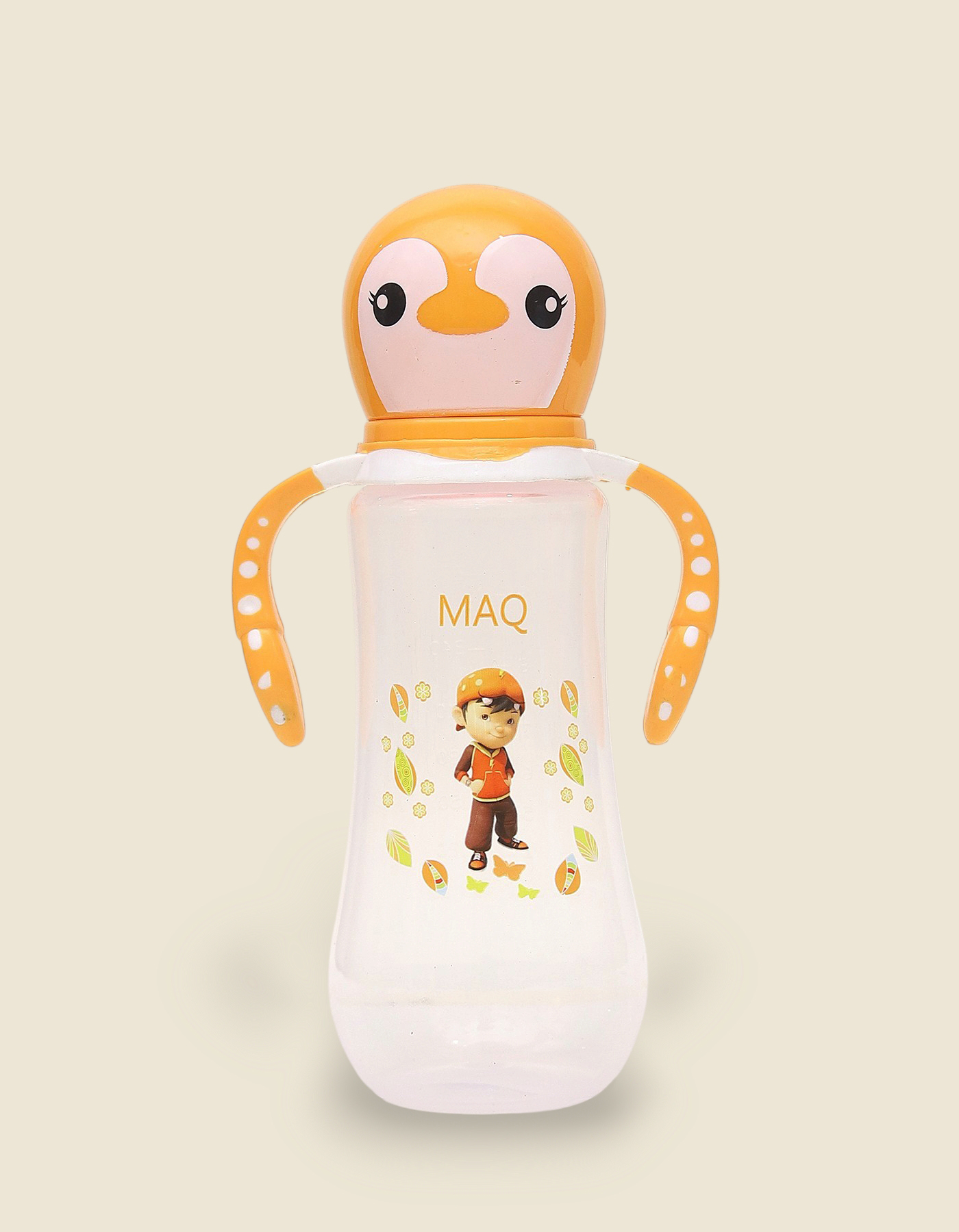 The MAQ Penguin Baby Feeder Bottles make feeding both fun and practical. Featuring a cute penguin-shaped cap, vibrant cartoon prints, and dual ergonomic handles, these bottles help toddlers learn to hold and drink independently. Made from BPA-free, food-grade plastic, they are safe for everyday use and easy to clean, making them the perfect choice for both home and travel.