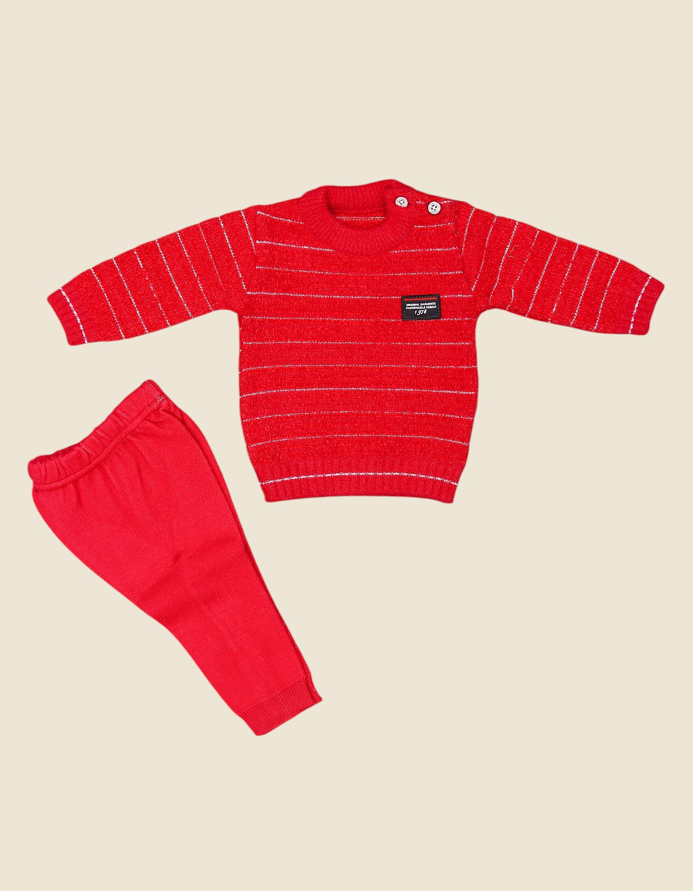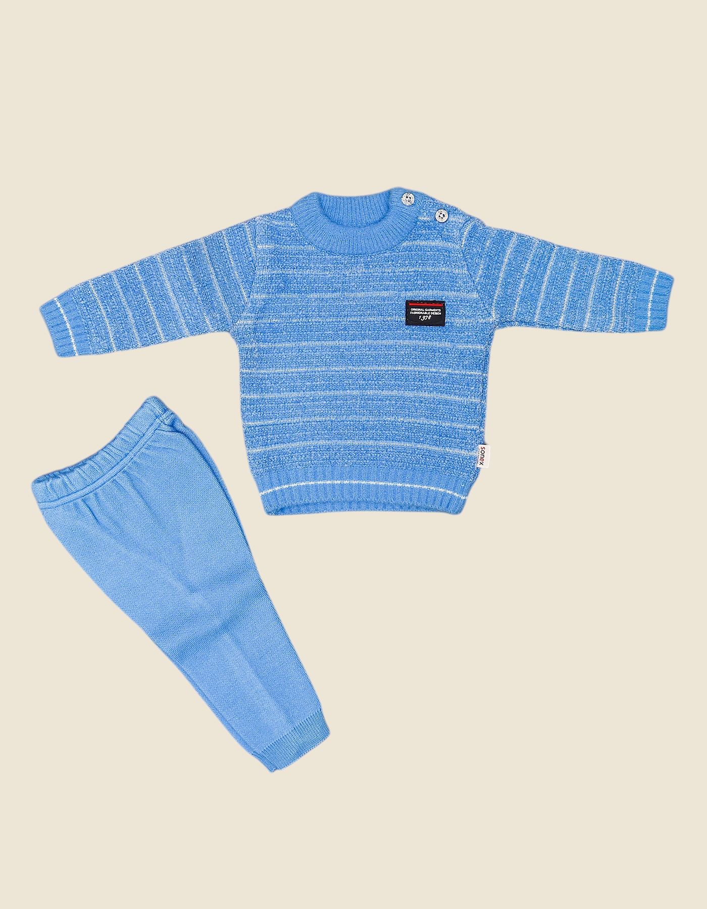 Keep your little one warm and stylish with this Newborn Woolen Striped Suit. Designed with a modern striped sweater and matching woolen pants, this cozy two-piece set is perfect for winter wear. The premium knit fabric ensures warmth without compromising on comfort, while the easy button closure at the shoulder makes dressing hassle-free. Available in multiple attractive colors, its a must-have for your baby winter wardrobe.