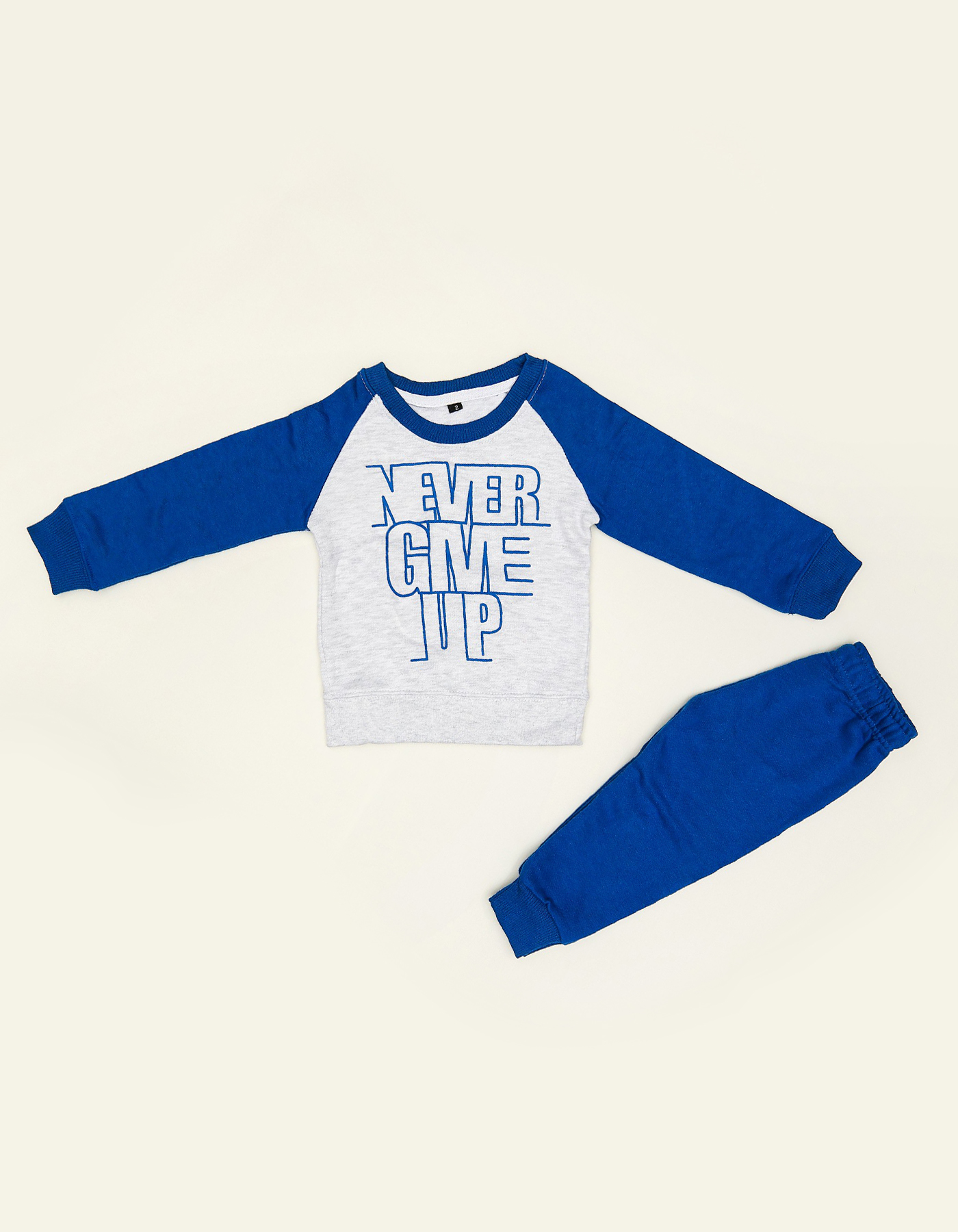 Motivational and stylish, this boys tracksuit is designed to keep kids active and confident. Featuring a bold Never Give Up slogan on a two-tone sweatshirt, it offers comfort with a sporty look.