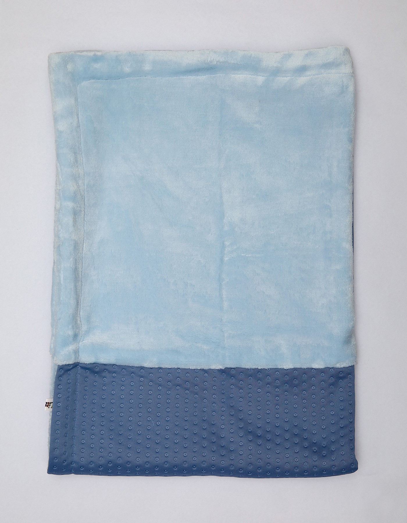 Soft and cozy newborn shawl in a two tone blue design. Made with gentle fabric to keep your baby warm and comfortable all day.