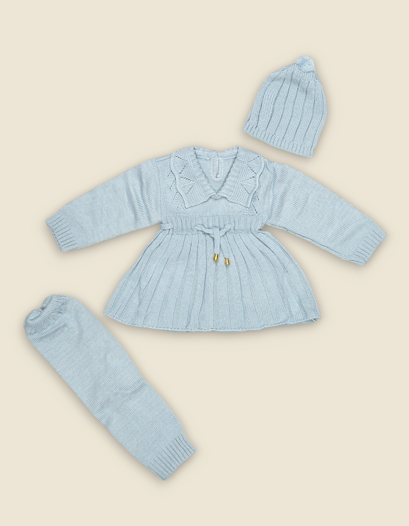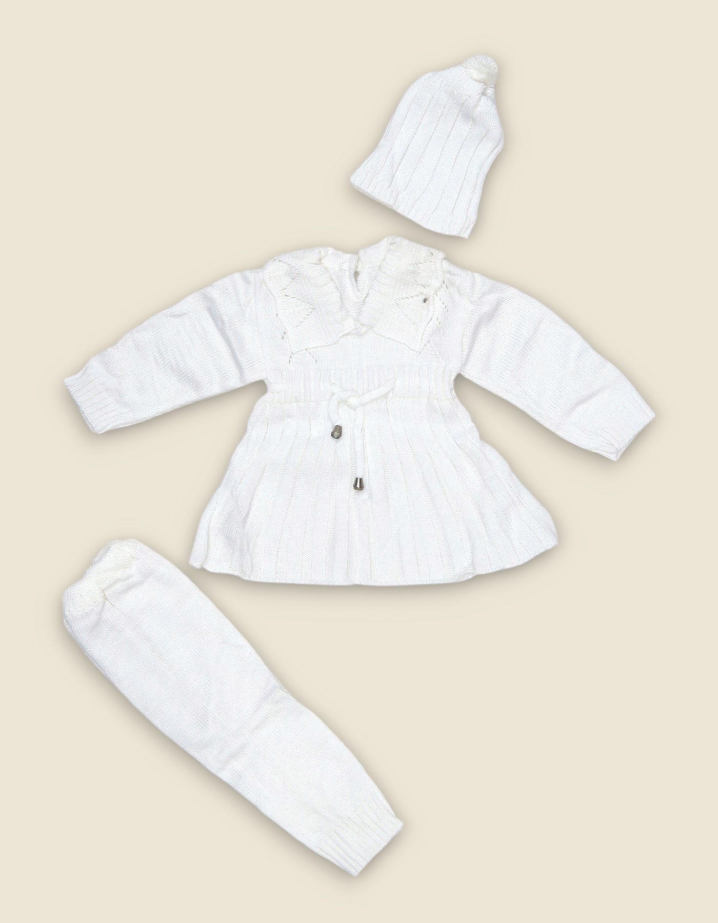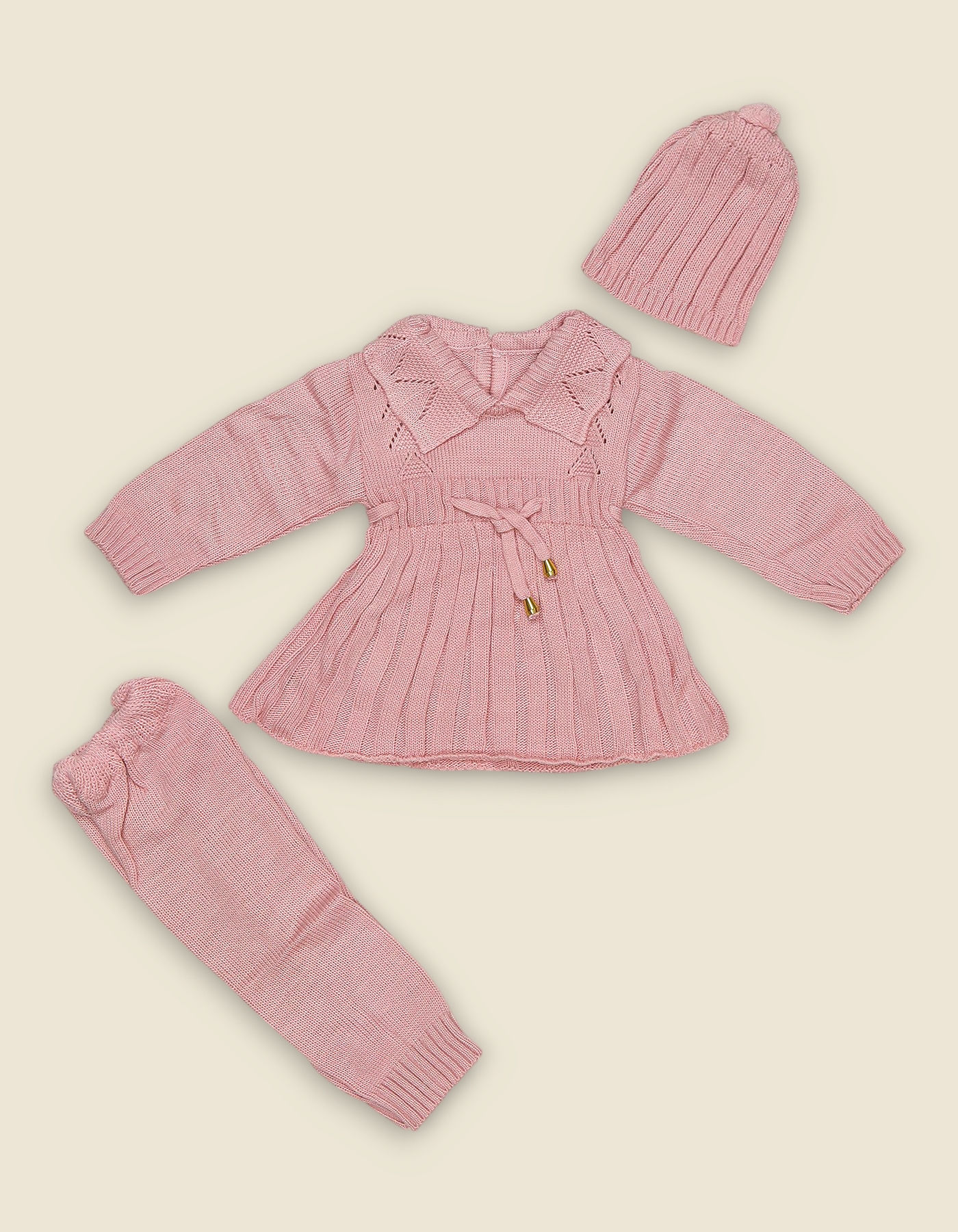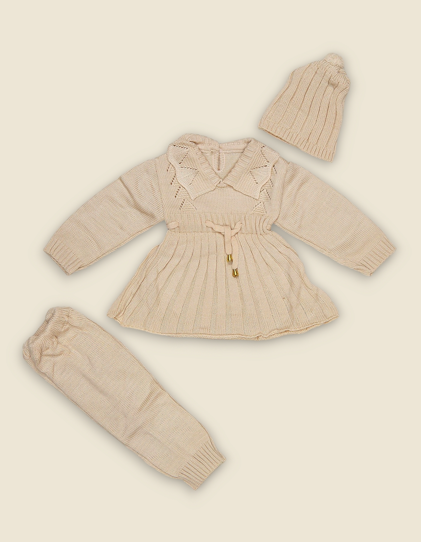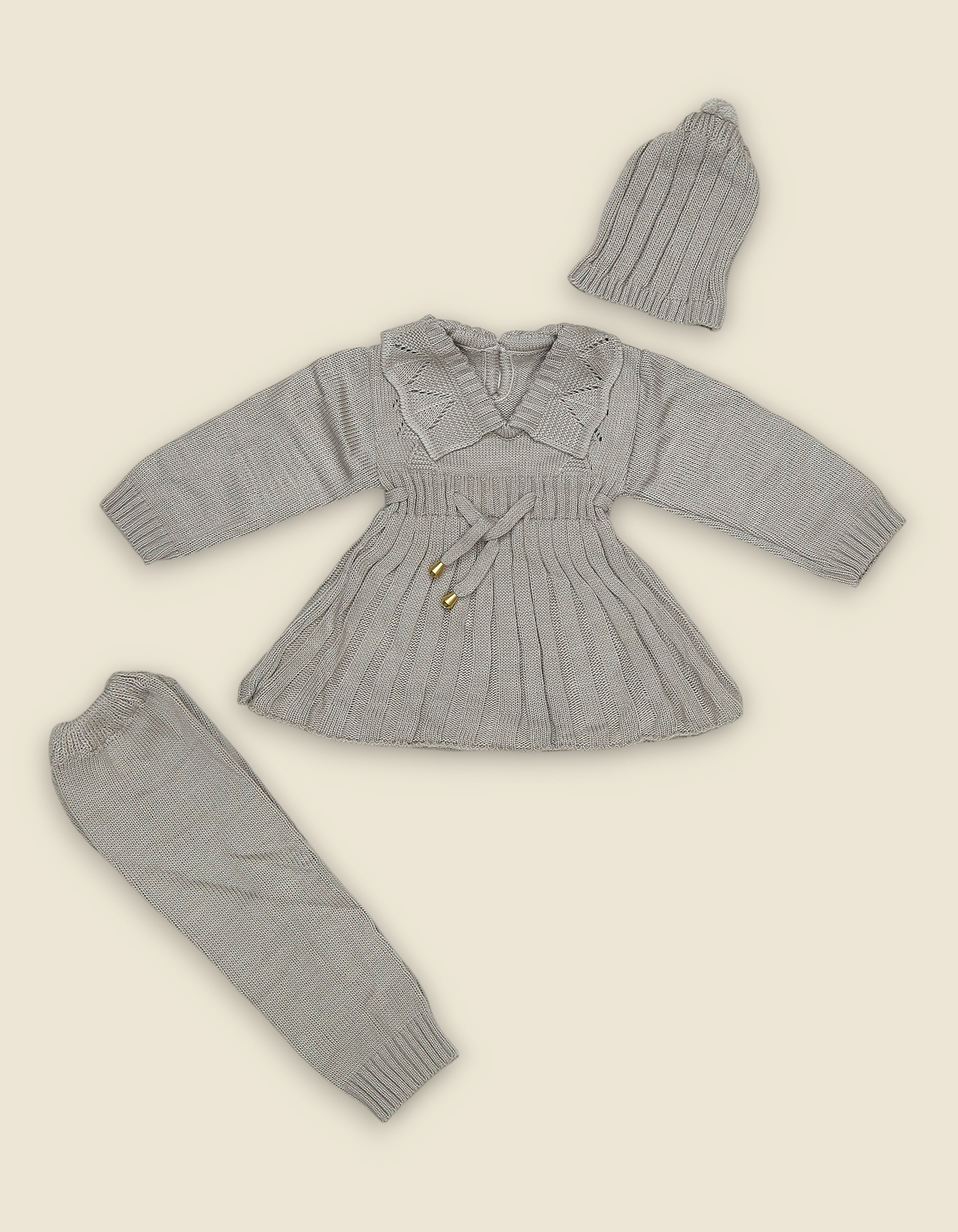 Cozy newborn woolen suit with knitted dress pants and matching hat. Perfect for winter wear gifting and baby showers