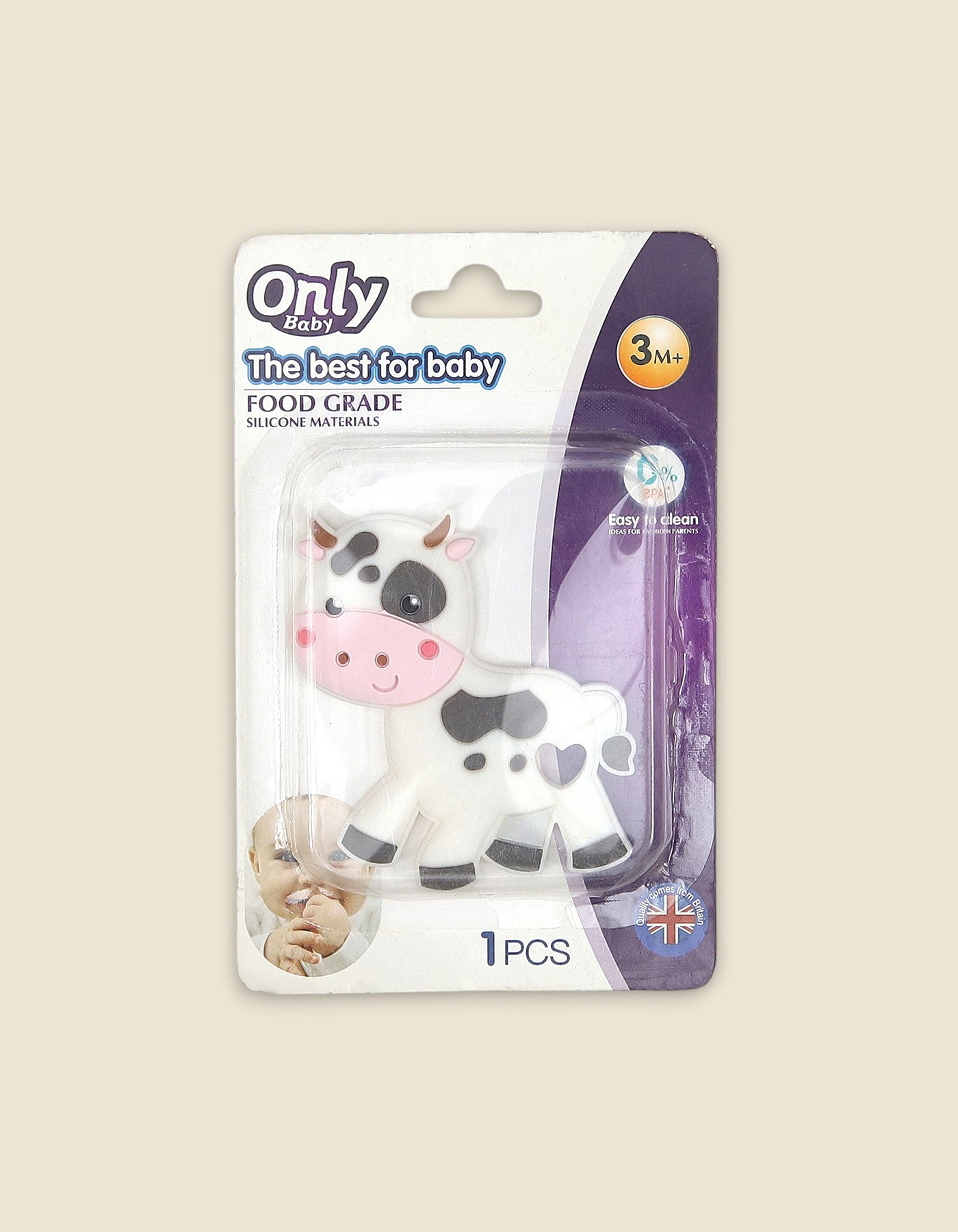Adorable cow shaped silicone teether designed to soothe sore gums for babies from 3 months. Made from food grade BPA free silicone with gentle textures and soft flexibility. Easy for little hands to grasp and simple to clean. Individually retail packed.