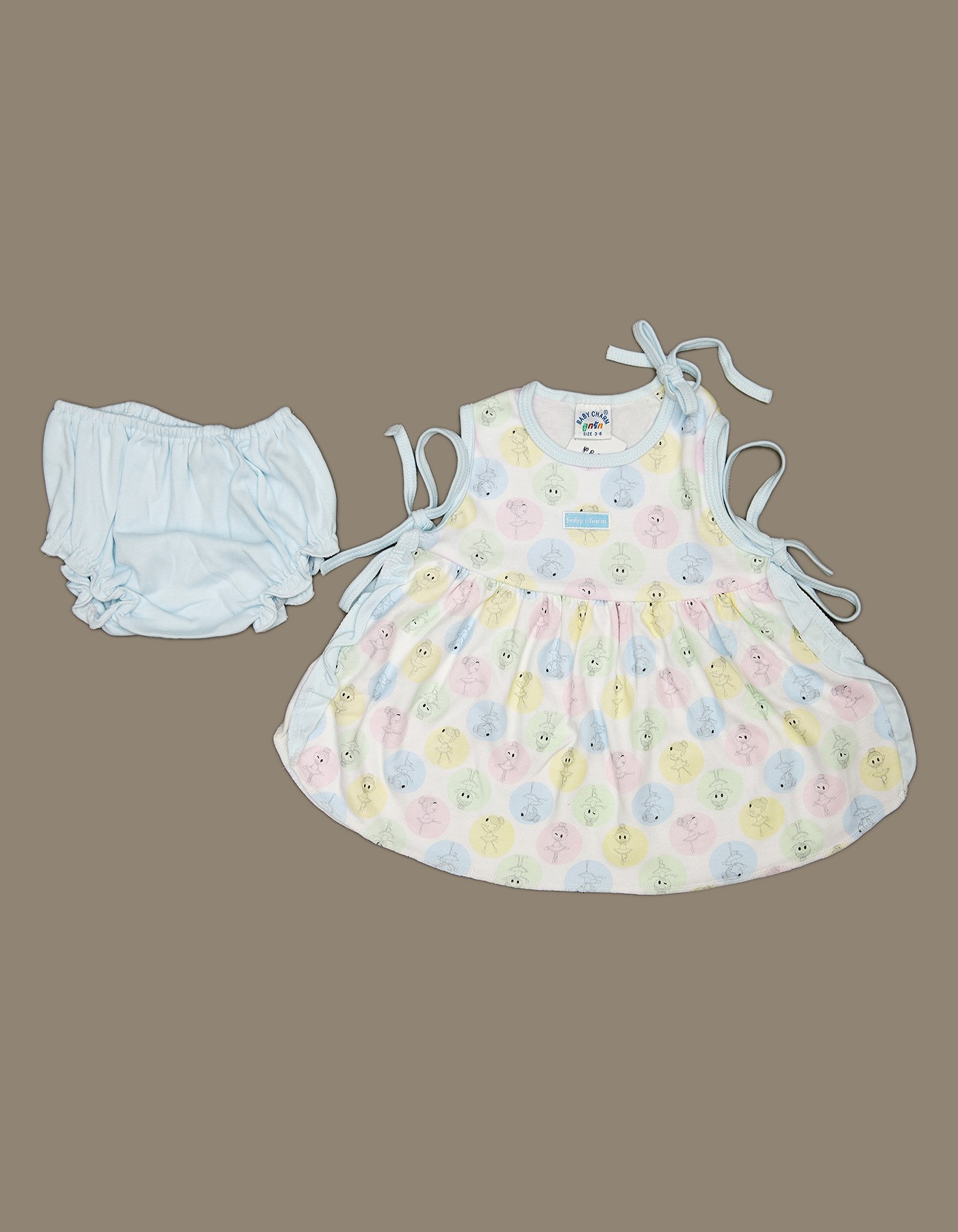 A cute and comfortable pastel baby dress with a matching bloomer, designed for everyday wear and casual outings. The soft, breathable fabric and pastel-colored print make it perfect for your babys delicate skin.