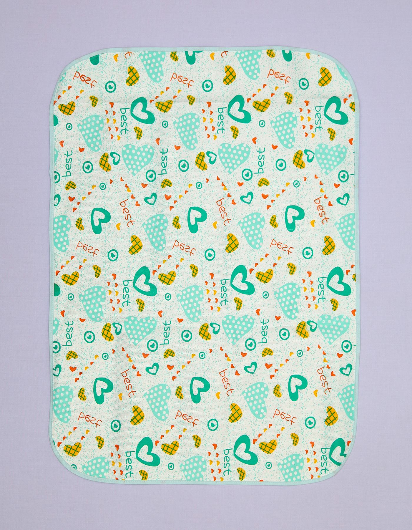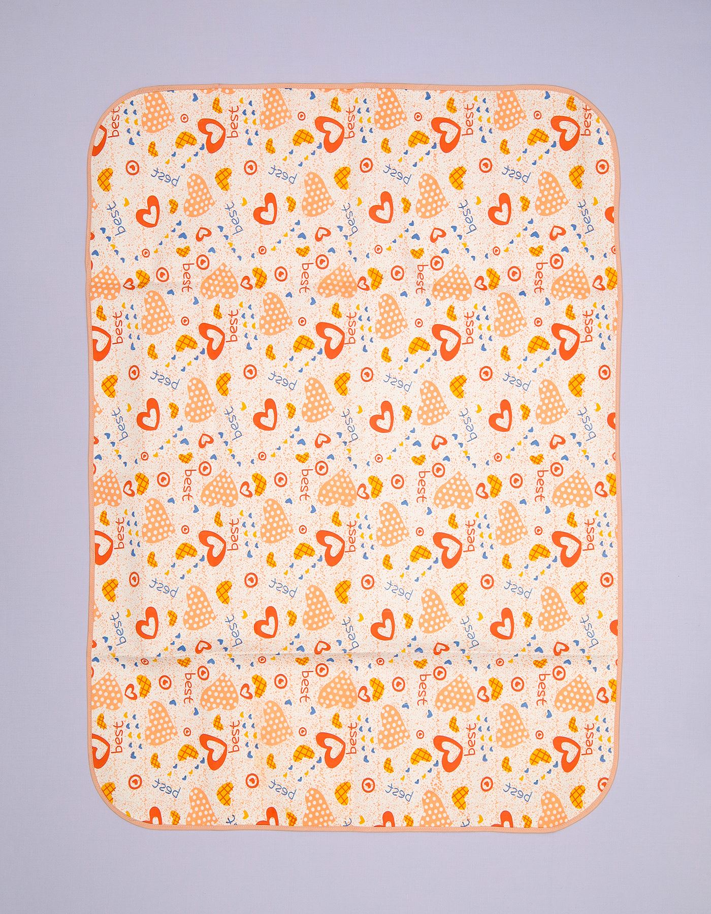 A soft baby mat with cheerful mushrooms, hearts, and flowers. Designed with rounded corners and orange trim, perfect for playtime or nap time.