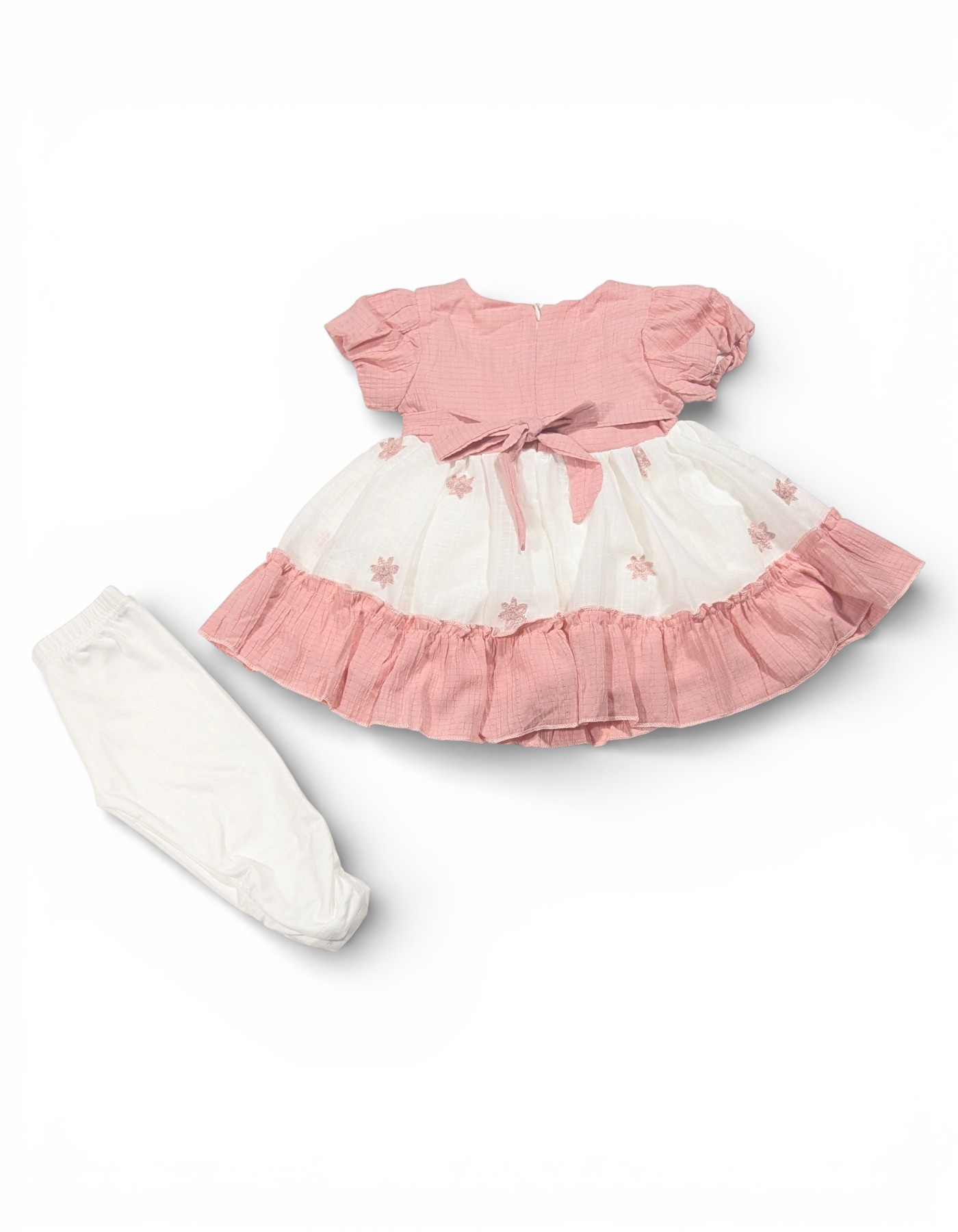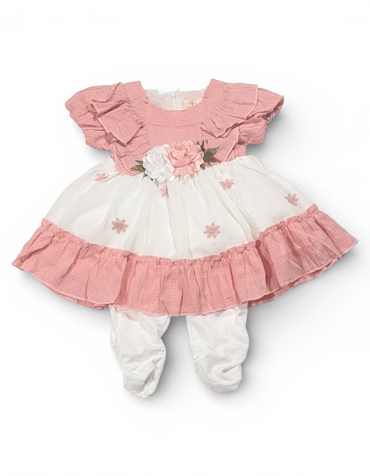 Peach & White Floral Ruffle Party Frock with Leggings for Baby Girls