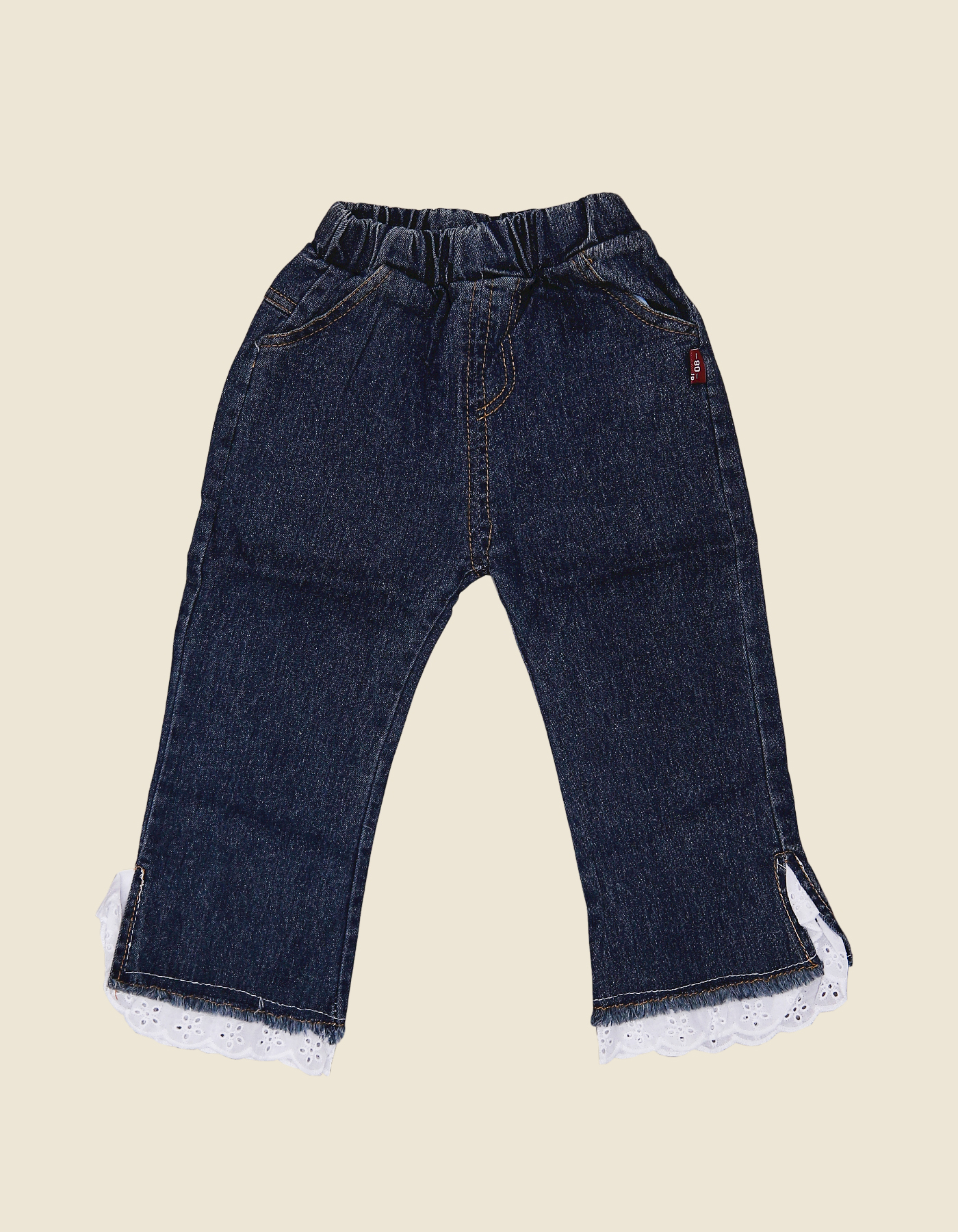 Denim Pants with Lace Hem – Stylish and comfortable with elastic waist and lace-trimmed ankles.