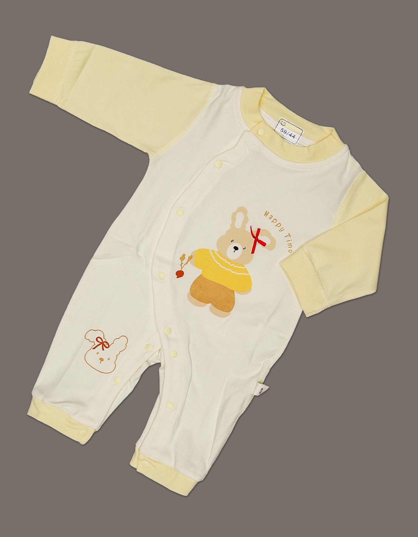 This adorable yellow baby romper is designed for all-day comfort and style. Made from soft, breathable fabric, it ensures your newborn stays cozy and happy. The cute teddy bear print adds charm, while the snap-button closure makes dressing and diaper changes quick and easy. Perfect for everyday wear, gifting, or special occasions.