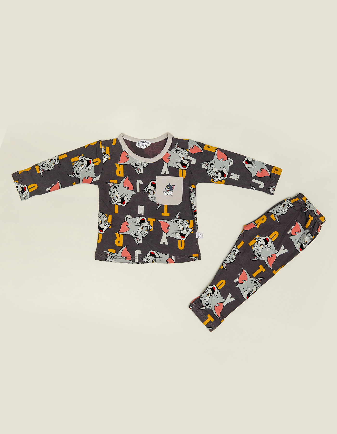 Turn bedtime into fun time with this Dark Grey Cartoon Print Boys Suit. Featuring playful cartoon character graphics with alphabet prints, this set includes a comfy long sleeve top and matching bottoms. The chest pocket adds a trendy detail, making it both stylish and practical. Made from soft, breathable fabric, it keeps kids cozy through sleep, lounging, or indoor play.