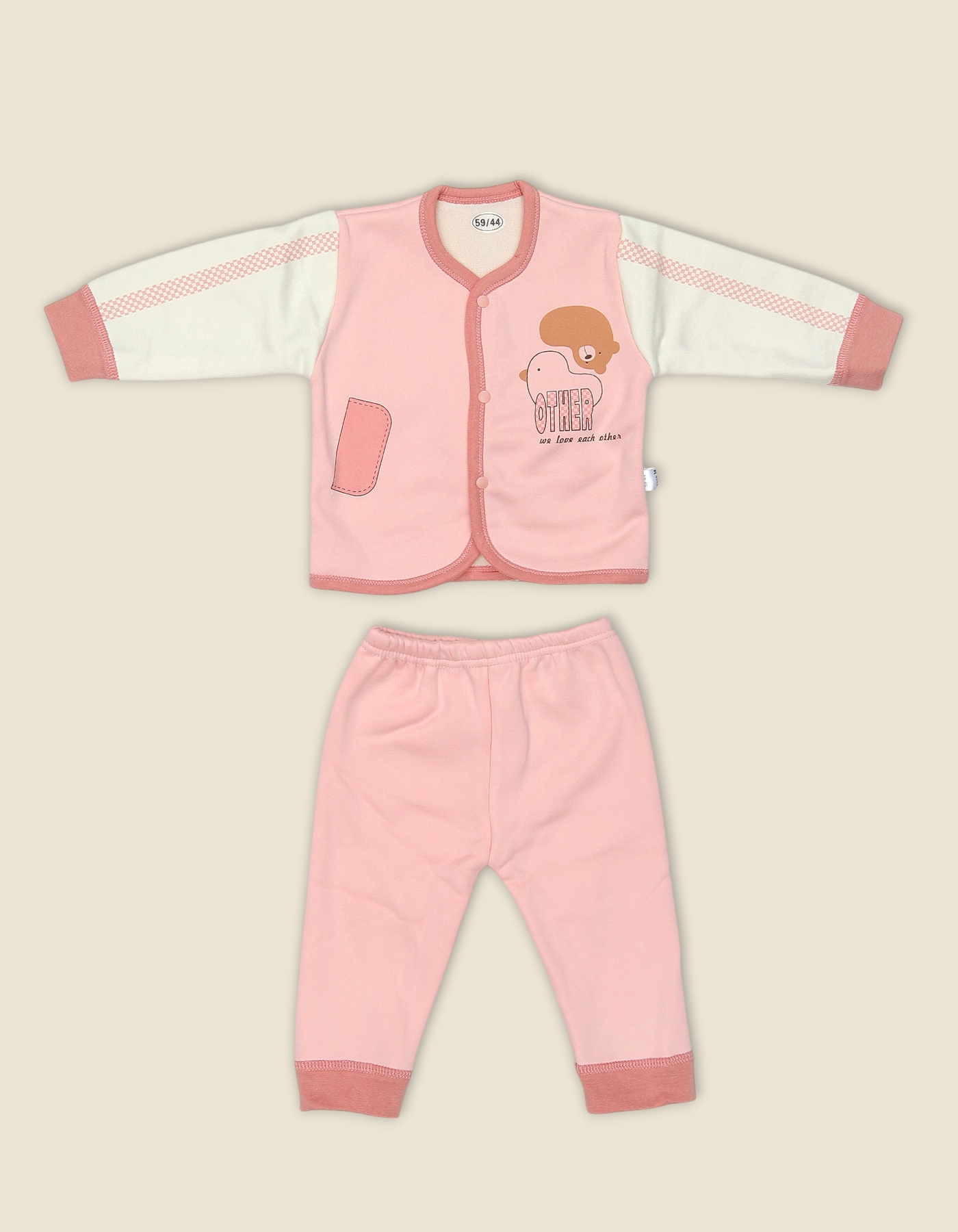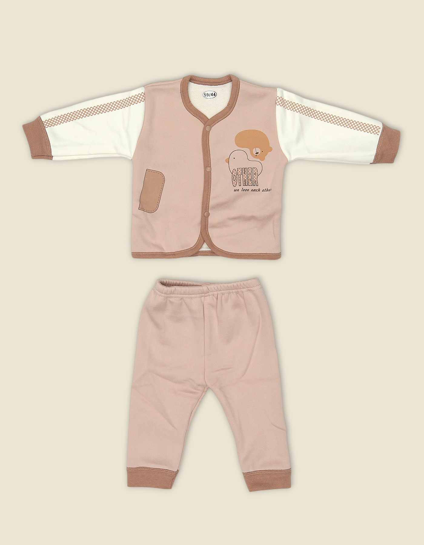 Soft two-piece baby outfit featuring a cream and brown top with otter print and matching pants. Designed for comfort and everyday cuteness.